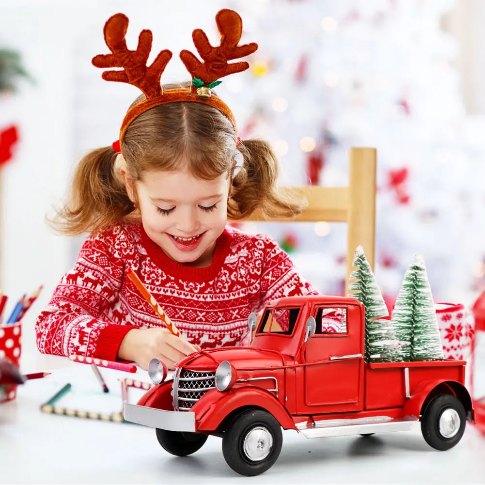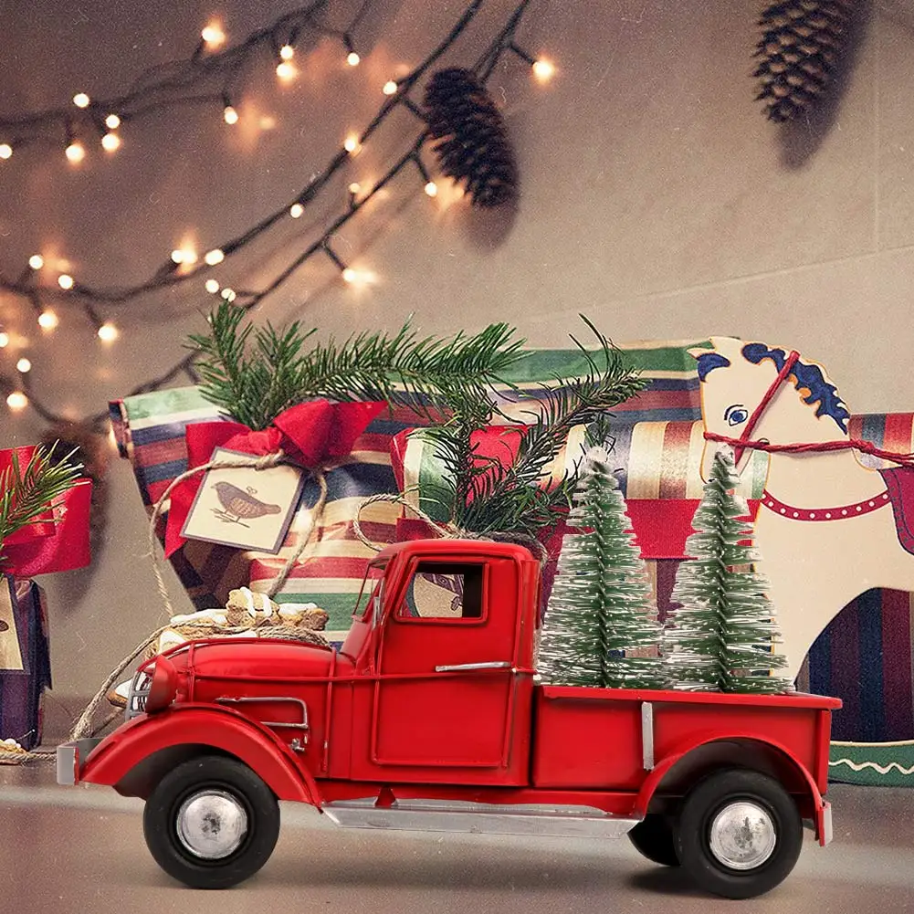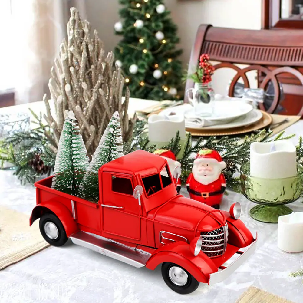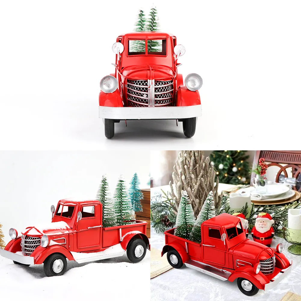 OurWarm рождественский красный металлический грузовик винтажный грузовик рождественский стол декор красный грузовик с рождественской елкой декор для стола для дома