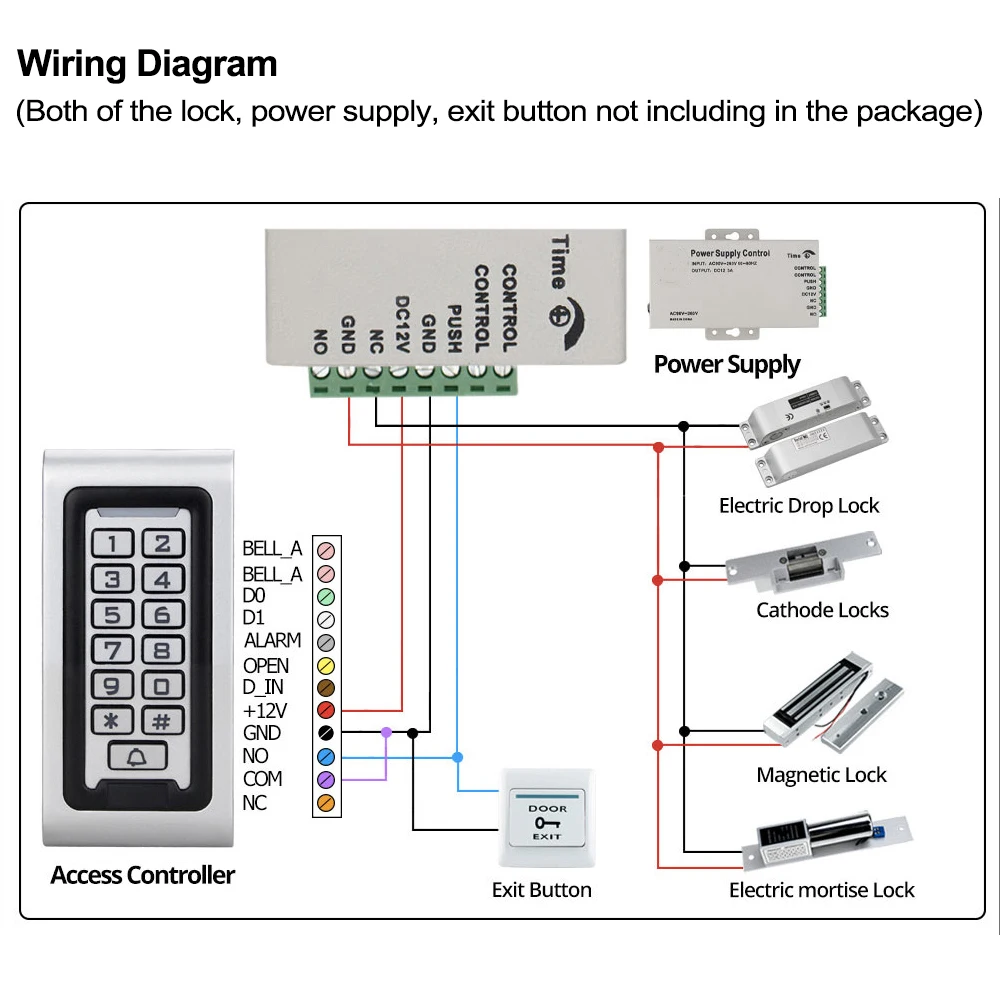 Пожалуйста, обратите внимание, что блок питания, электрический замок, кнопка выхода, дверной звонок не включены в посылка, необходимо купить дополнительно. Спасибо!