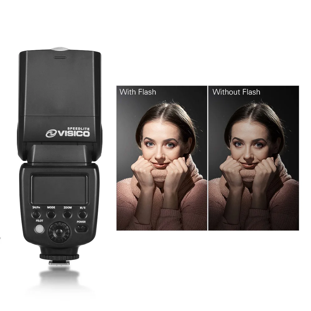 Вспышка Speedlite TTL VISICO со встроенной 2,4G беспроводной триггерной системой 18000s Синхронизация с ЖК-дисплеем Горячий башмак для камеры Nikon