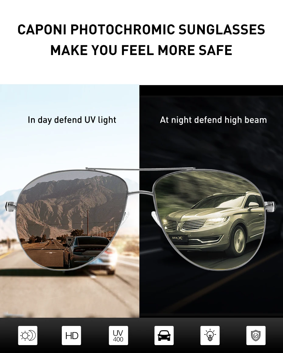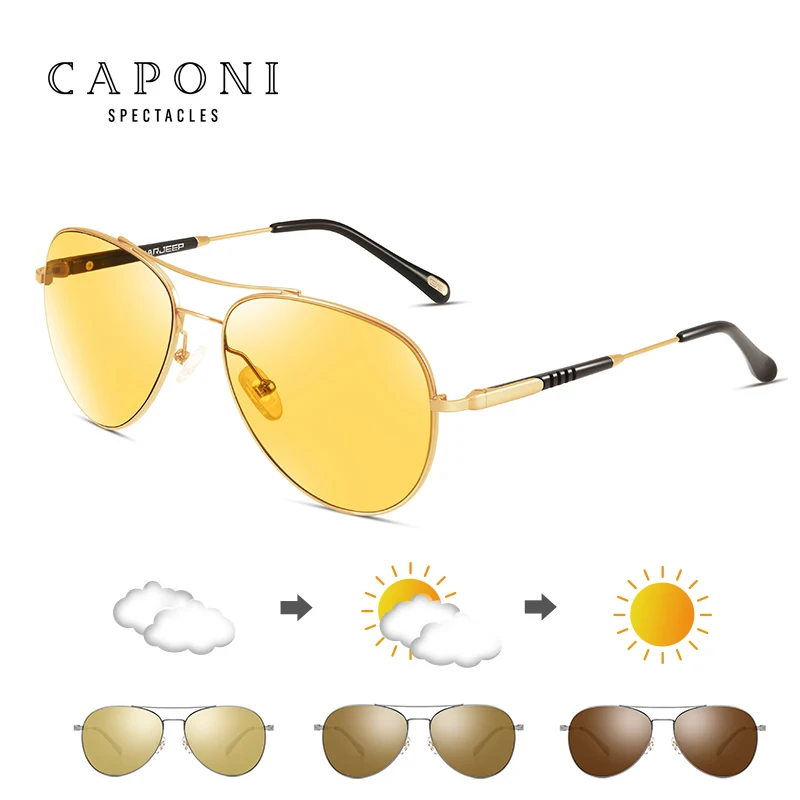 Солнцезащитные очки CAPONI BSYS3109 для мужчин и женщин, Поляризованные, с желтыми линзами, с функцией ночного видения, интеллектуальные, меняющие цвет
