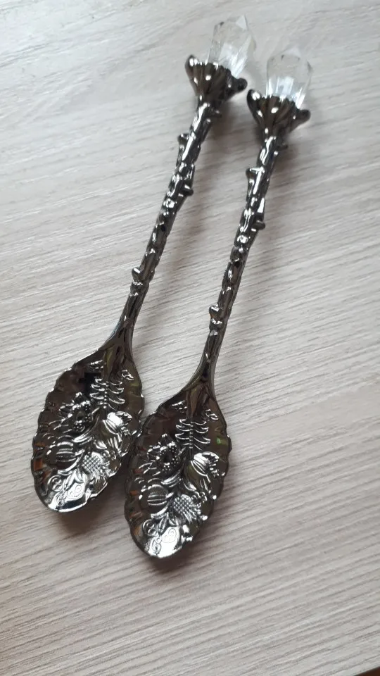 Ложка с хрустальной головкой для бара винтажная в Королевском Стиле из сплава резная мини-кофейная ложка столовые приборы десертная чайная ложки, кухонные принадлежности