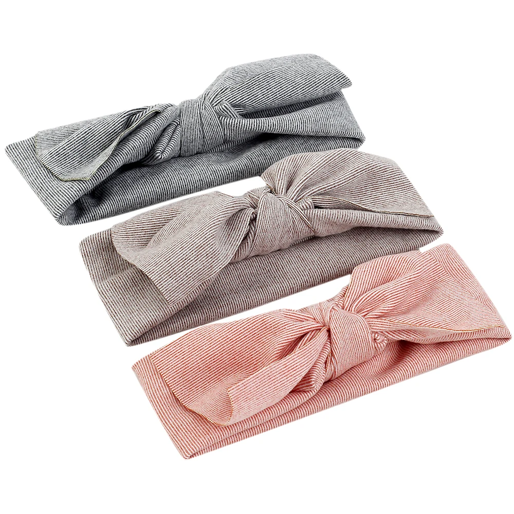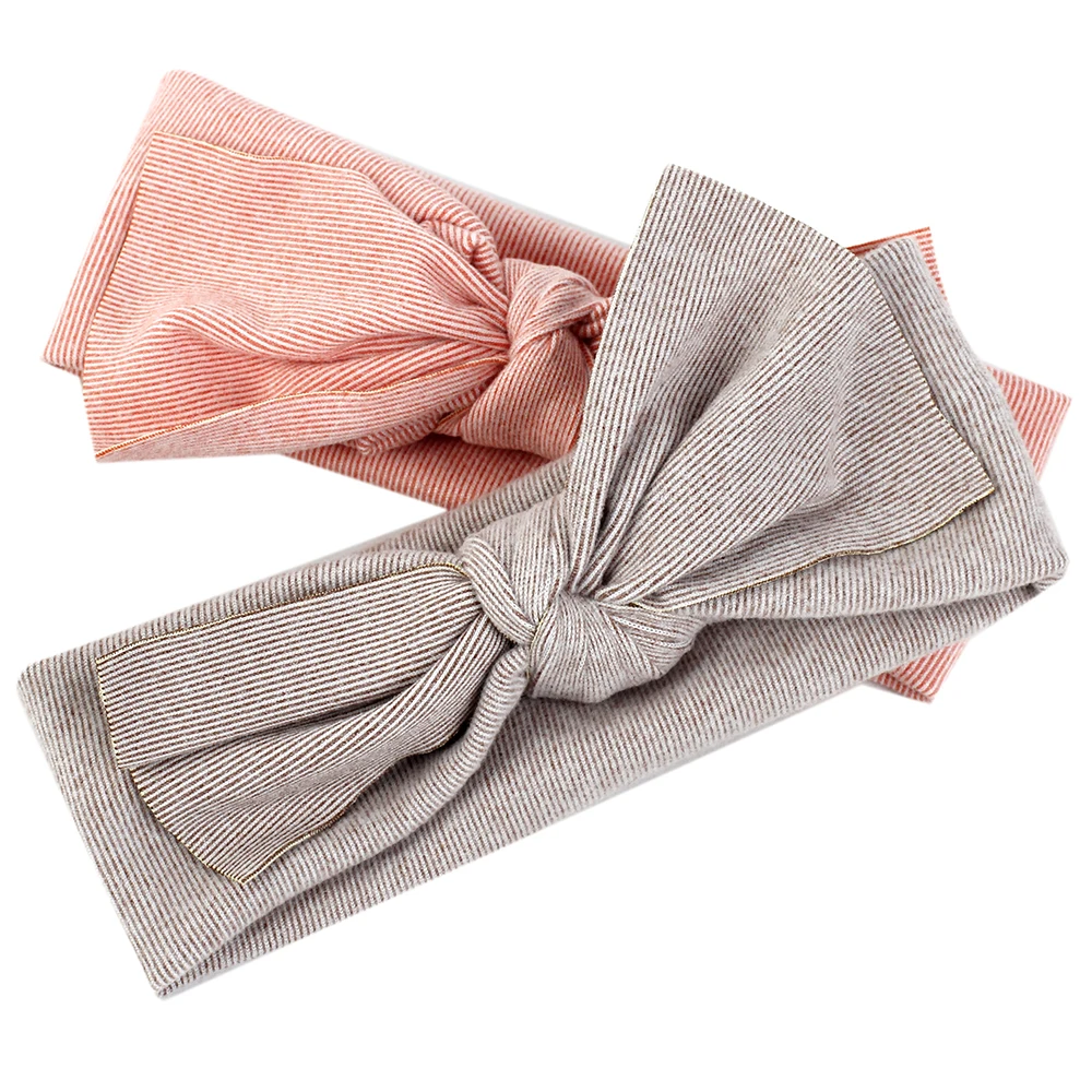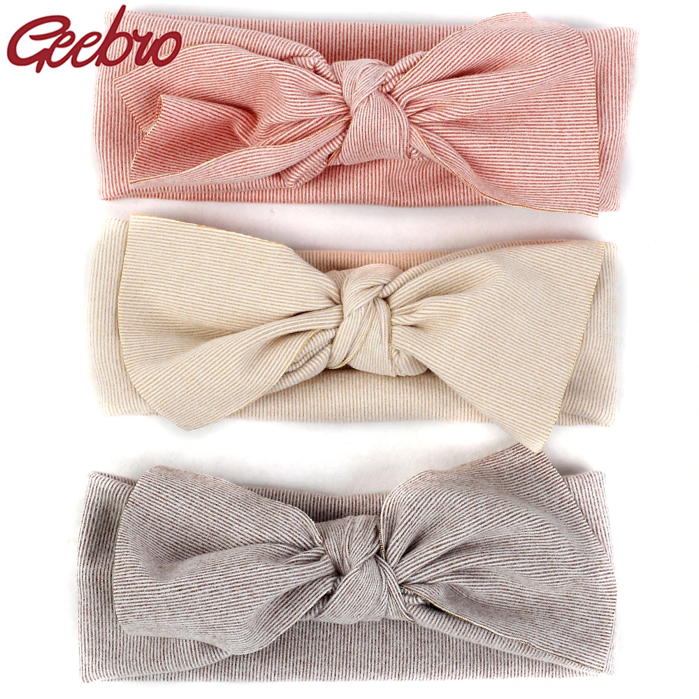 Тюрбан Geebro, мягкий хлопковый в полоску, для новорожденных девочек, повязки на голову с бантом