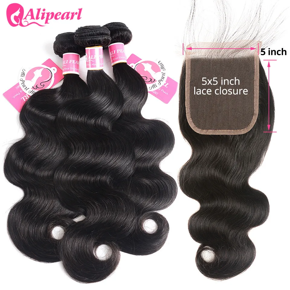Объемные волнистые человеческие волосы, 3 пряди, 5x5, кружевное закрытие, свободная часть, перуанские волосы, плетение, пряди, Remy, волосы для наращивания, aliborl Hair