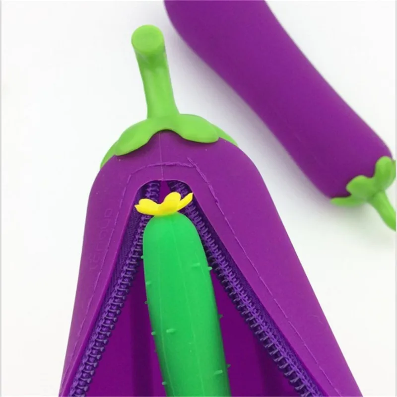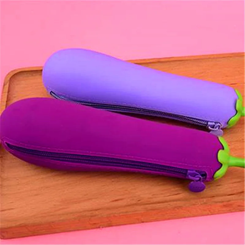 Силиконовый чехол для карандашей, в форме фиолетового баклажана, для начальной школы, школьные канцелярские принадлежности, милый, каваи