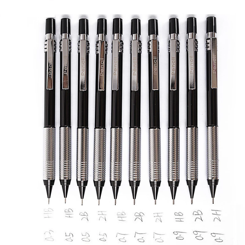 Карандаш автоматический 1 шт., металлический карандаш 2H HB 2B 0,5 мм 0,7 мм 0,9 мм, принадлежности для набросок рисунок, школы и офиса
