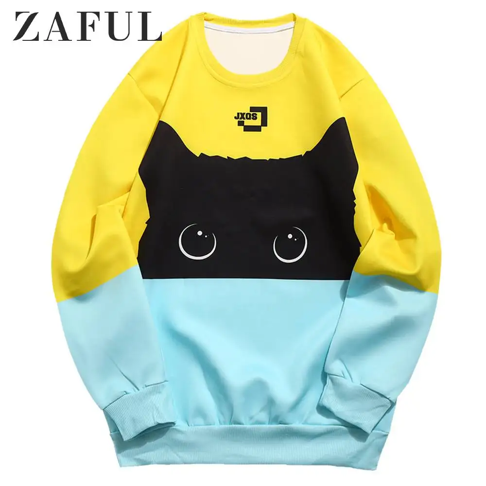 Мужская толстовка с объемным принтом в виде кота ZAFUL, разноцветная толстовка с длинными рукавами и изображением животного, осень 2019