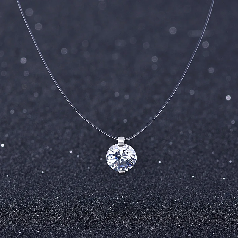 Женское прозрачное ожерелье на леске, цепочка до ключиц с кулоном из циркона в виде рыбьей кости