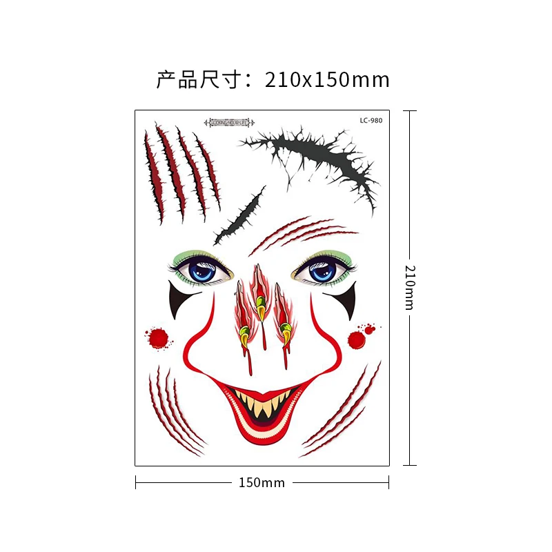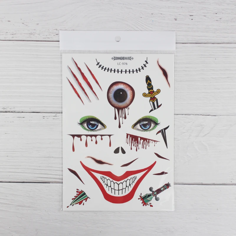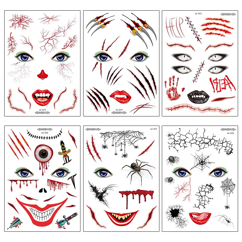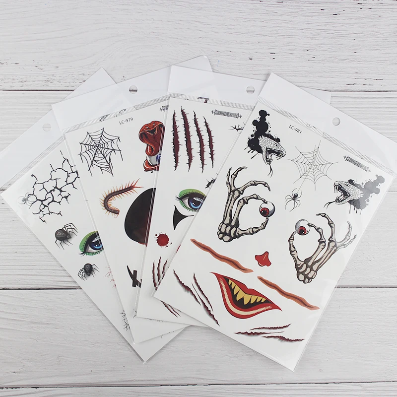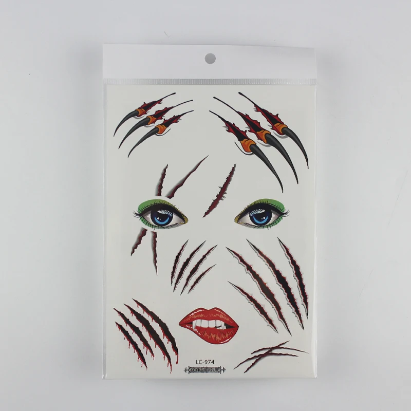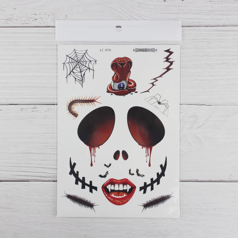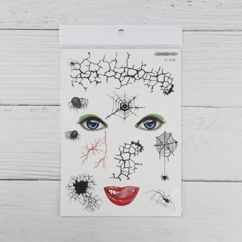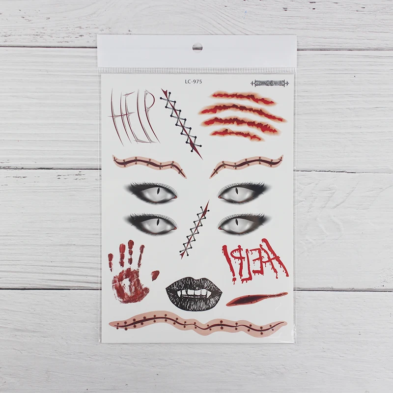 1 лист, Хэллоуин, тату, стикеры для маскарада, вечерние, большой размер, Поддельные глаза, рот, кровь, шрам, узор, поддельные татуировки, наклейки RA035