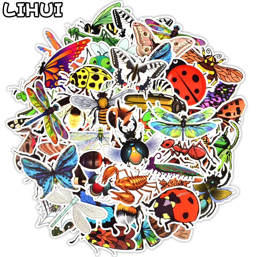 50 шт., стикеры с натуральным наклейки с насекомыми, животное, муравей, божья коровка, для велосипеда, чемодана, ноутбука, автомобиля, Обучающие игрушки, наклейки для детей