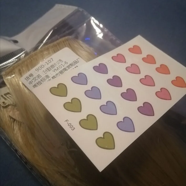 Товар прибыл целым, в подарок положили маленькие татуировки сердечки. Цвет выбирала наугад, поскольку знала что не будет соответствовать картинке. В момент заказа я покрасилась в платиновый блонд, но пока получила шиньен, цвет смылся и стал более желтоватым, точно таким как полученные искусственные волосы. Красиво смотрится, хоть и слишком блестят. На фото тоже не удаётся передать естественный цвет, что-то вроде песочного. Светлее брать побоялась и не прогадала. В целом всё понравилось