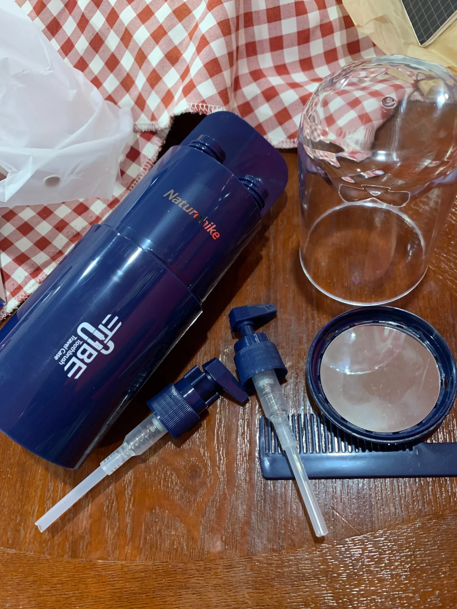 Сначала посылка не уходила с почты месяц, написал продавцу, сказал что там какие то проблемы и отправит набор из 5 предметов вместо 8 и положит подарок, по факту пришло 5 предметов и в качестве подарка полотенце, только чуть большего размера чем в наборе, еле влезло в стакан, стоимость такого полотенца явно не 6$ , в остальном товар хороший.