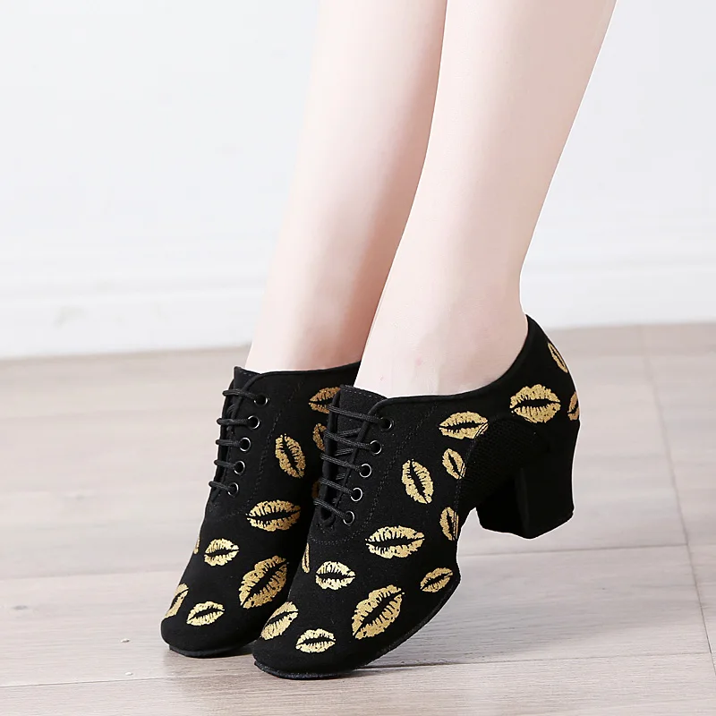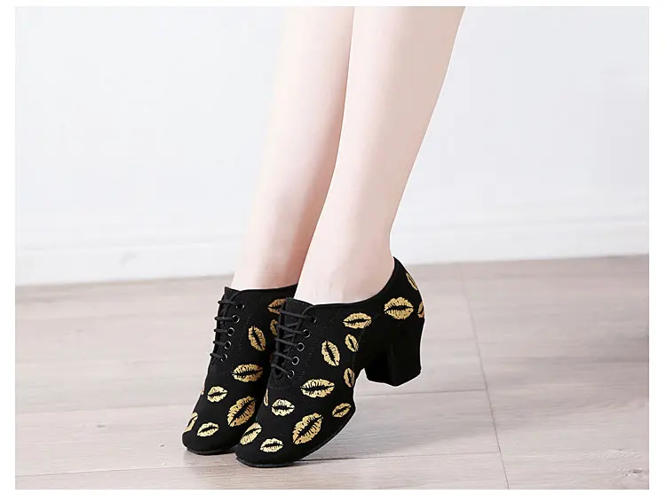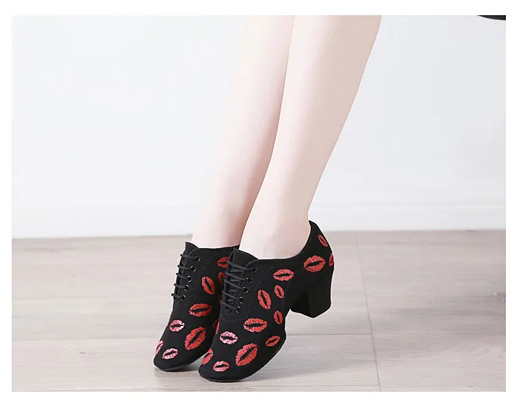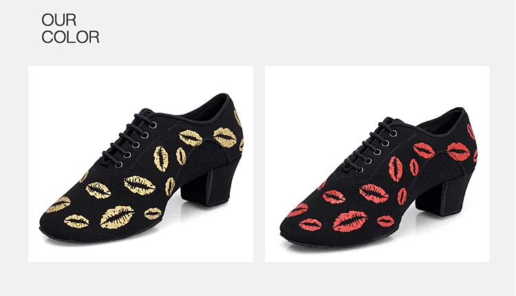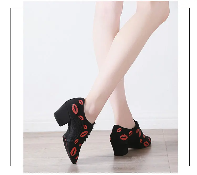 Женские туфли для латиноамериканских танцев, с принтом в виде губ