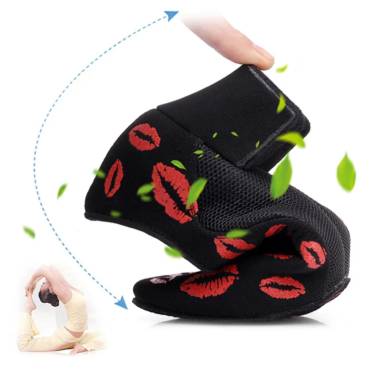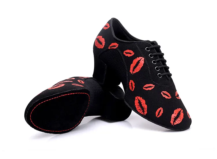 Женские танцевальные туфли, черные, красные, с принтом в виде губ