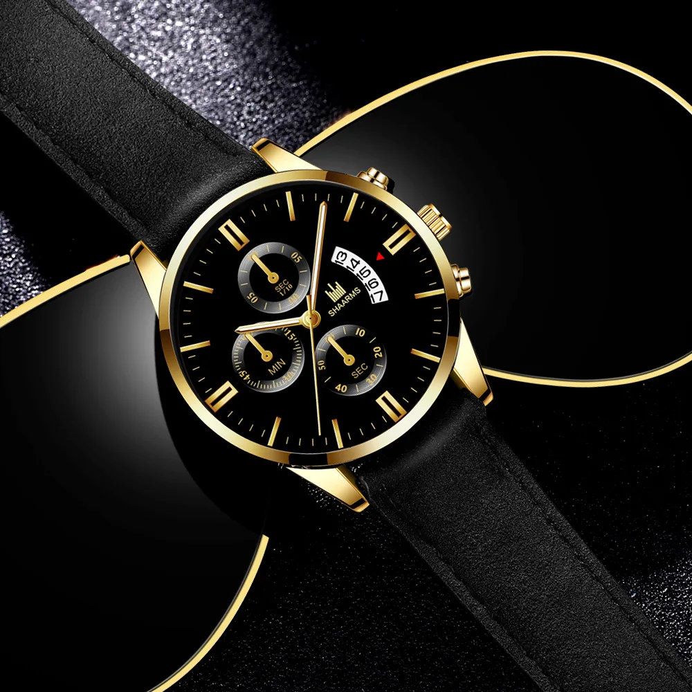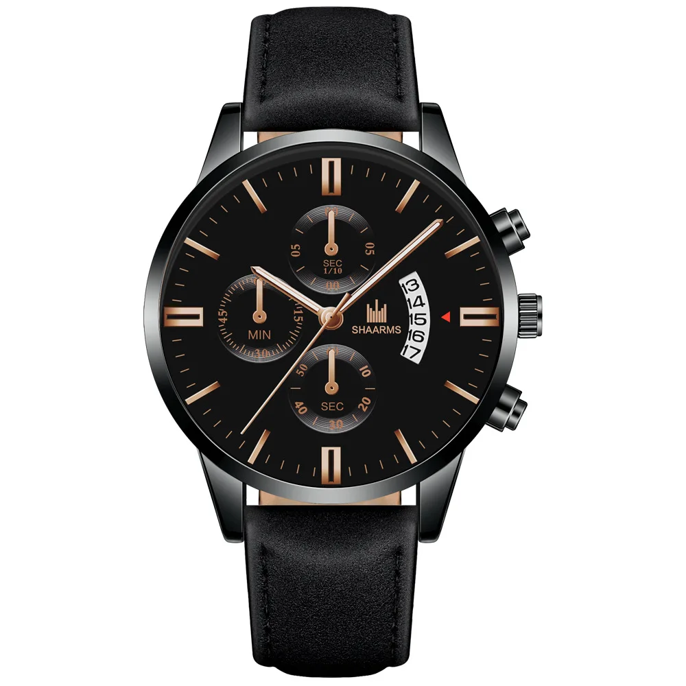 Часы мужские, повседневные, кварцевые, с кожаным ремешком, черные, ...