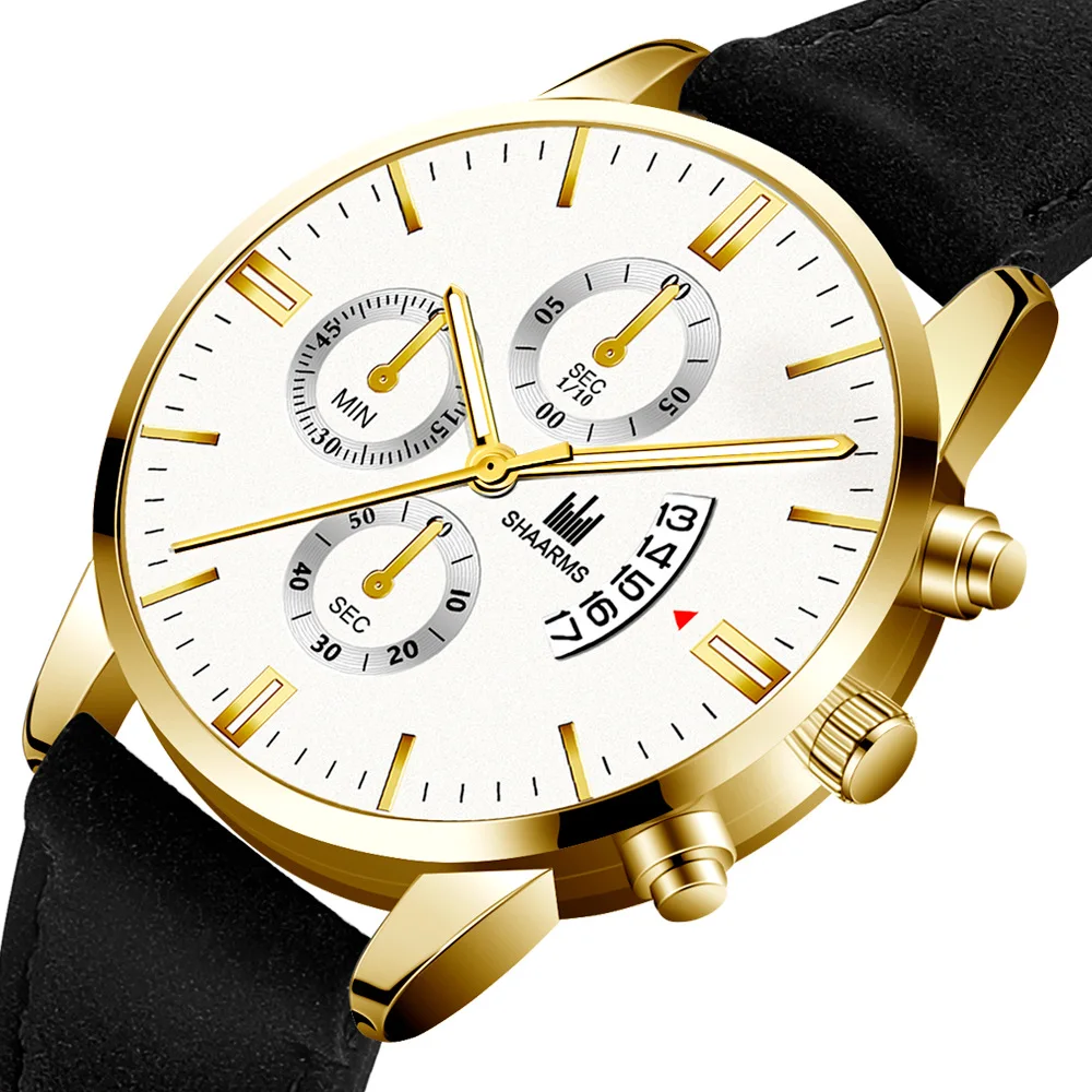 Роскошные кожаные мужские часы, модные часы с искусственным хроногр...