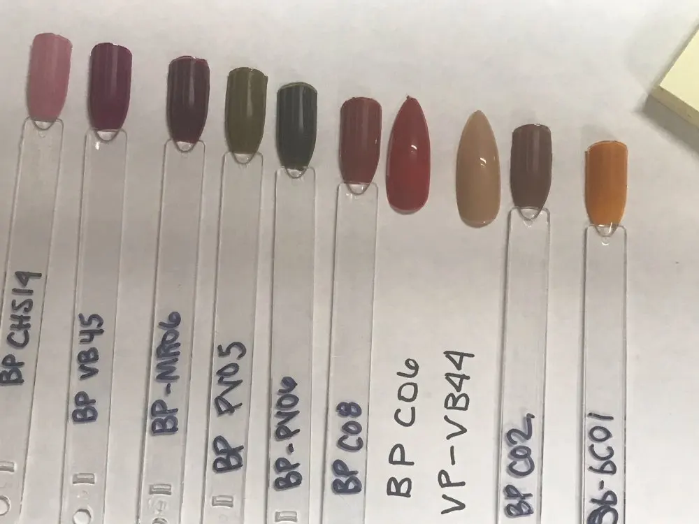 Лаки супер! Беру не первый раз. Светло- розовый кошачий глаз клиентки очень любят. Цвета плотные, не полосят. Два слоя достаточно. В носке отличные. Шли долго-почти три месяца. Упакованы хорошо. Продавцу удачи и процветания))