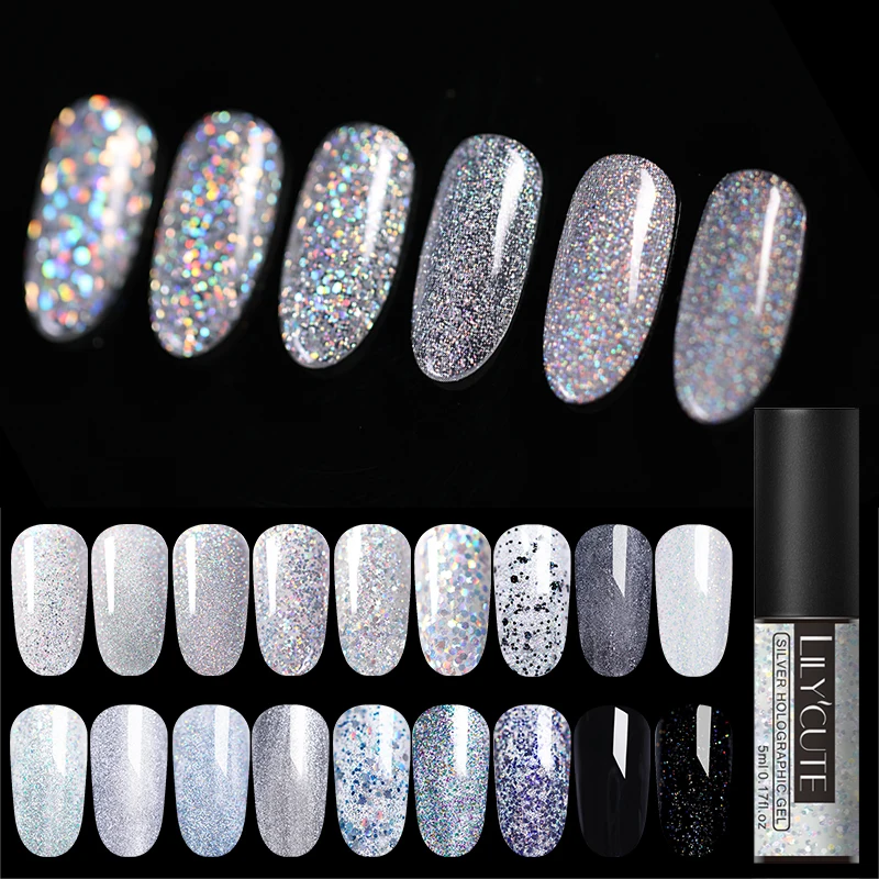 Гель-лак для ногтей LILYCUTE 5 мл с серебряными блестками УФ-Гель-лак долговечный отмачиваемый Гель-лак для нейл-арта
