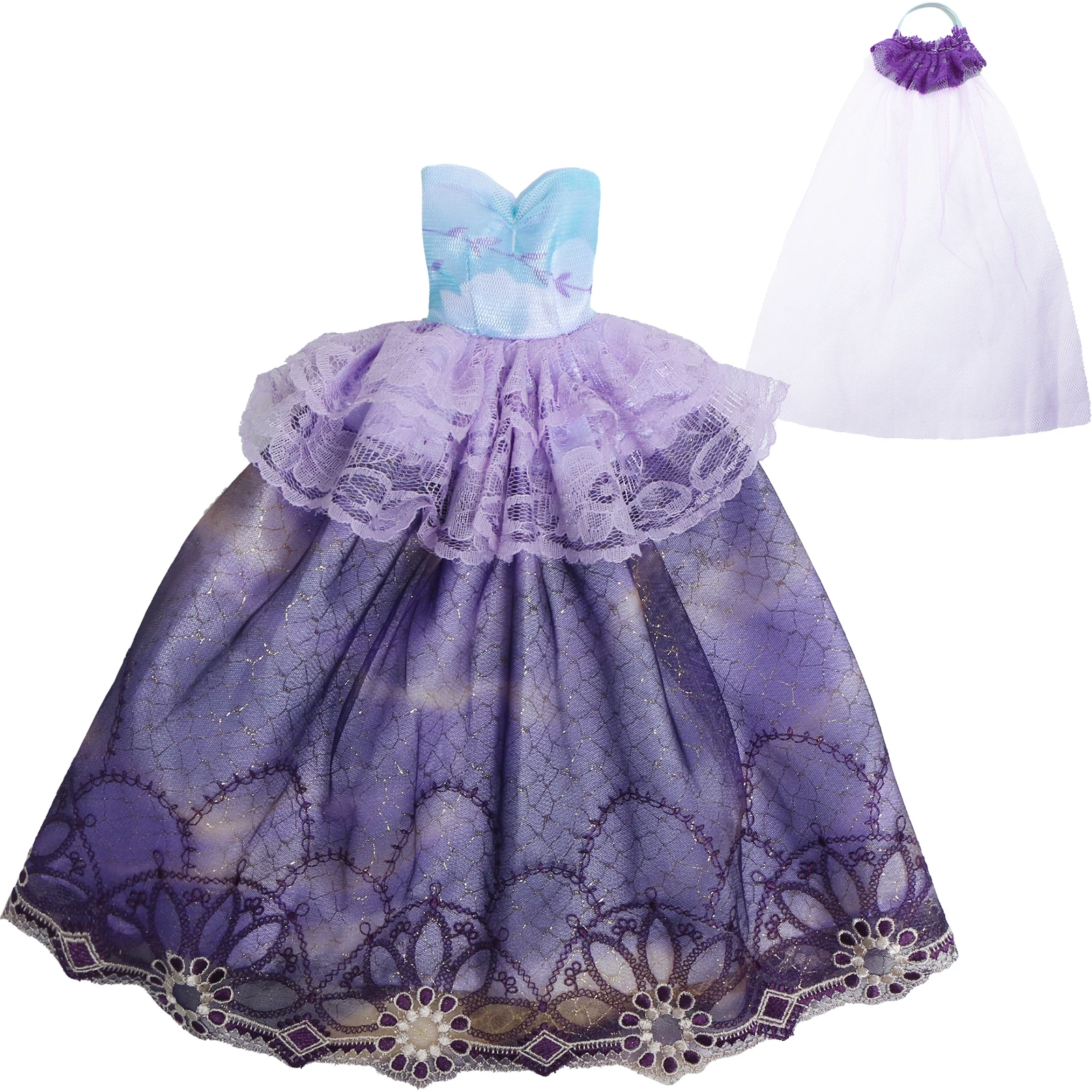 Роскошное фиолетовое кружевное платье принцессы, элегантная градиентная юбка + вуаль, свадебное праздничное бальное платье, Одежда для кукол Барби, аксессуары