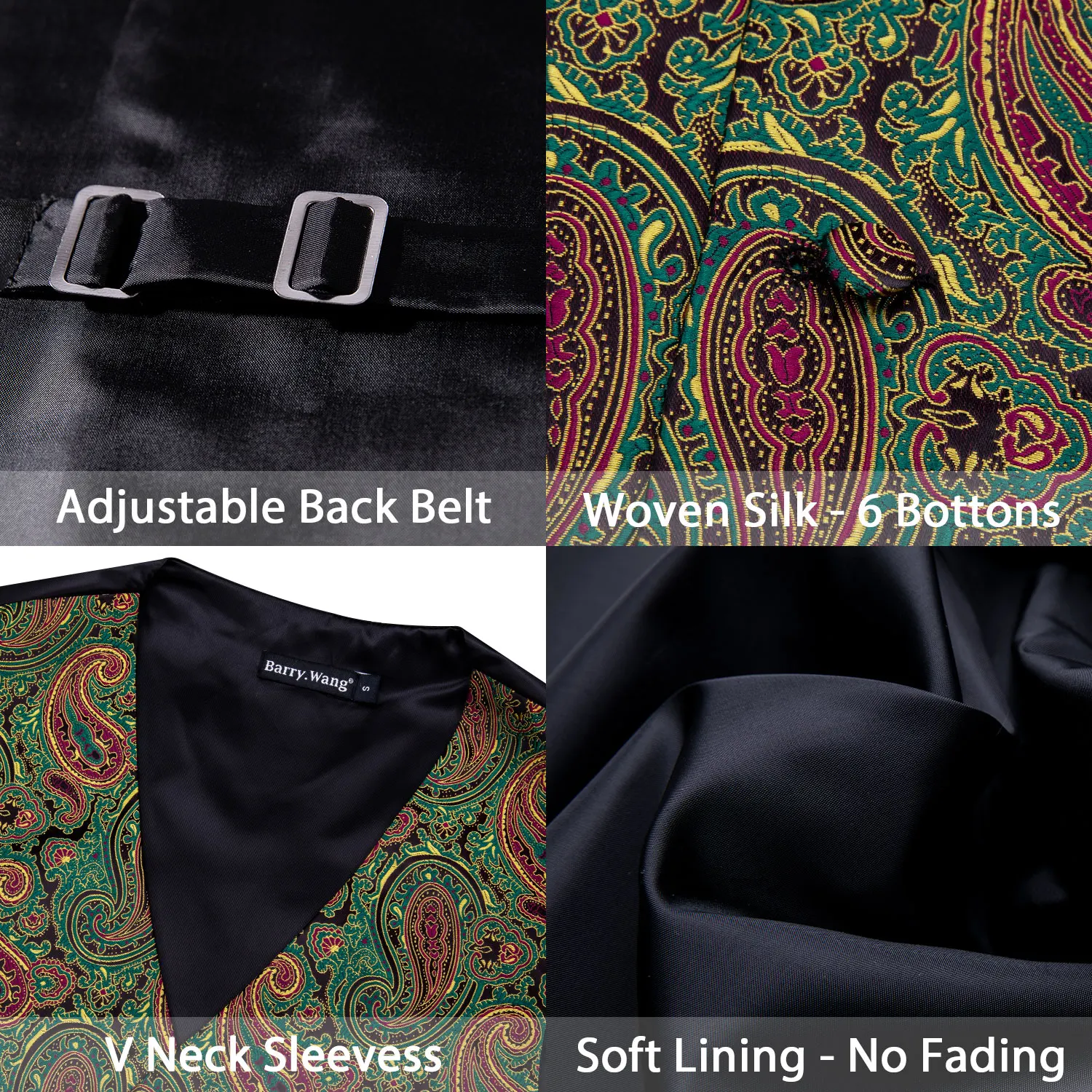 Бренд: Barry.Wang Состояние: ручная работа Материал основной ткани: 100% шелк Материал подкладки: полиэстер В комплект поставки входят: жилет, галстук-бабочка, носовой платок Упаковка: обычная упаковка для обеспечения защиты изделия Жилет + галстук-бабочка + нагрудный платок. Того же дизайна, идеальный матч. Подходит для: Повседневная носка, работы, вечеринок и свадеб, а также его можно носить в любое время года. Этот жилет размеры соответствуют американским размерам. Пожалуйста, обратитесь к нашей таблице размеров в описании товара