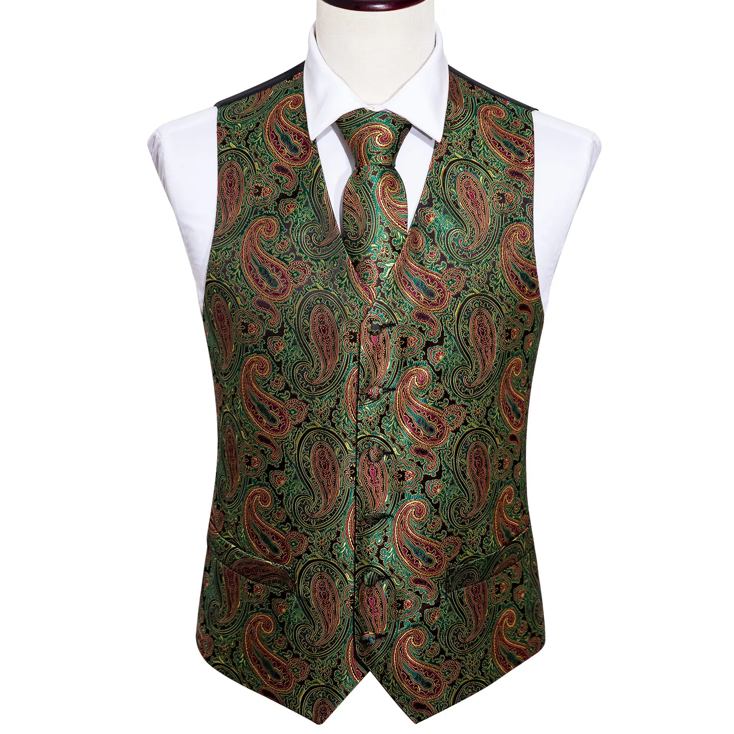 Мужской Шелковый жилет с карманами Barry.Wang, однотонный зеленый жилет с цветочным узором и квадратным галстуком, комплект из 4 предметов, для вечеринки и свадьбы, 2019