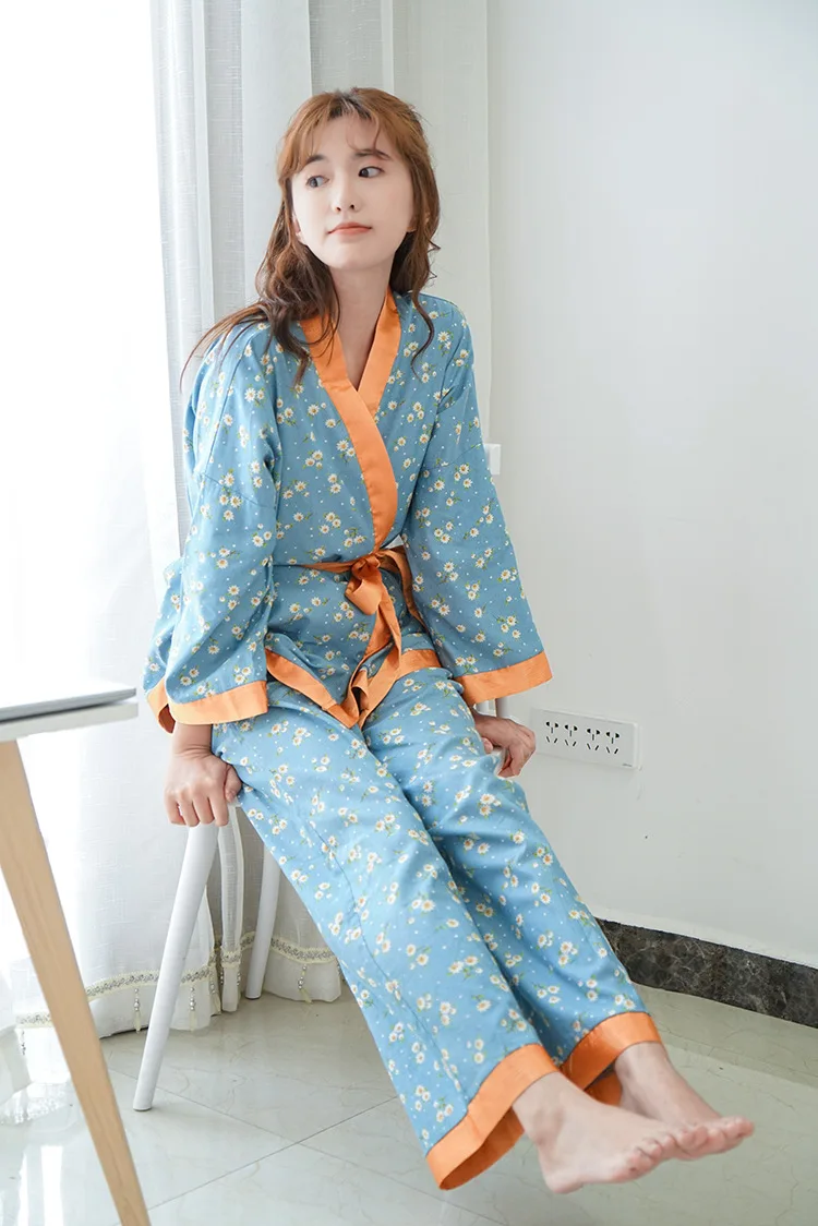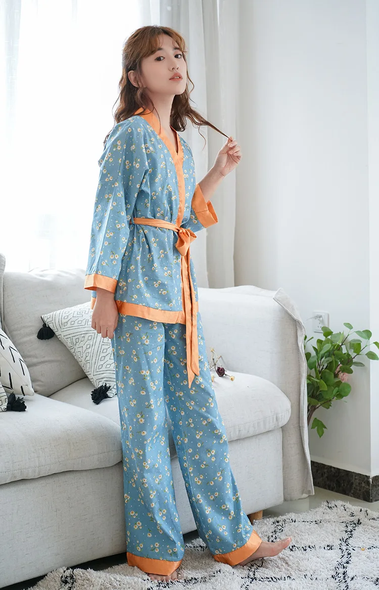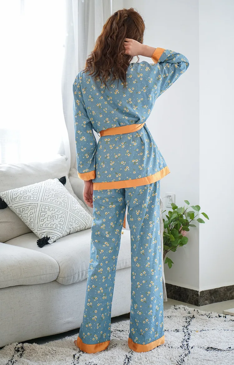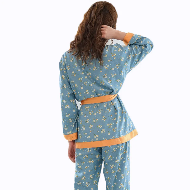 Новый цветочный принт с длинными рукавами брюки пижамы для женщин v-образным вырезом полиэстер Pijama Mujer Loungewear модная Пижама домашний комплект