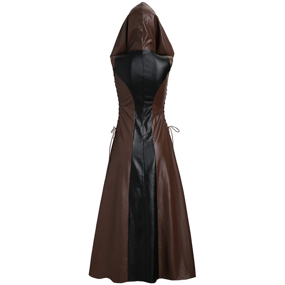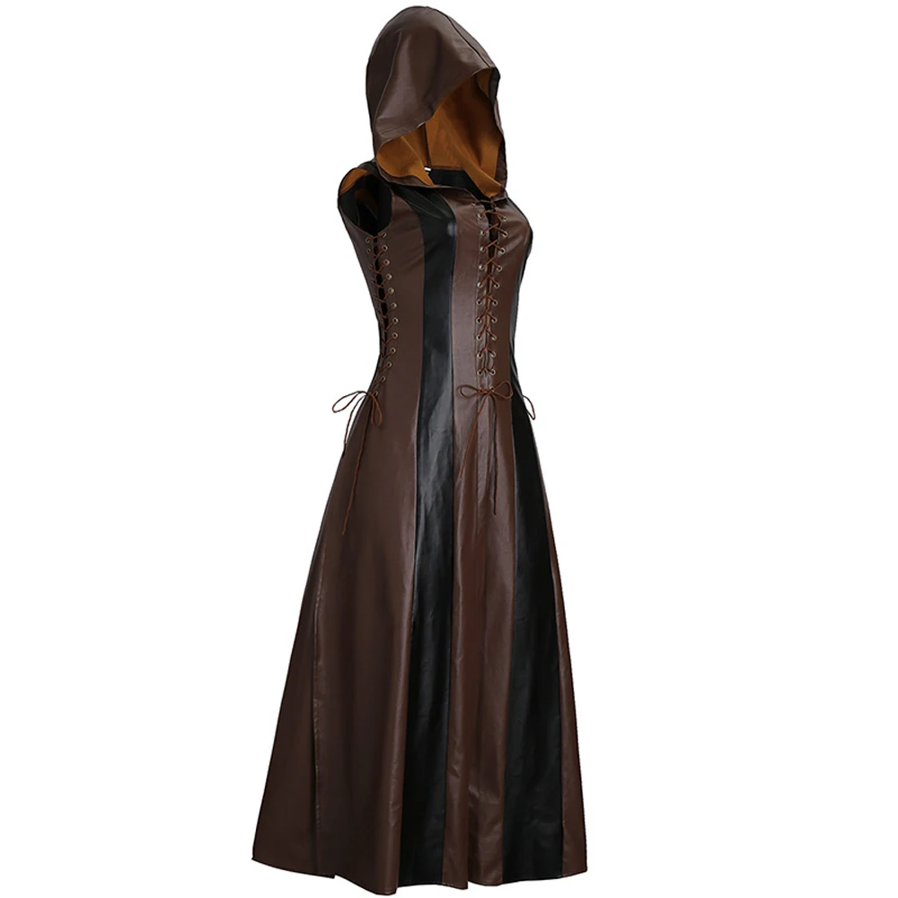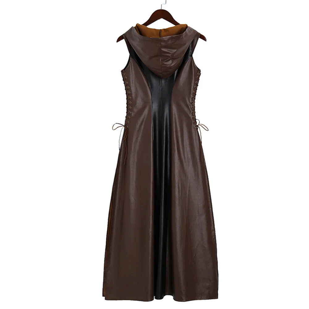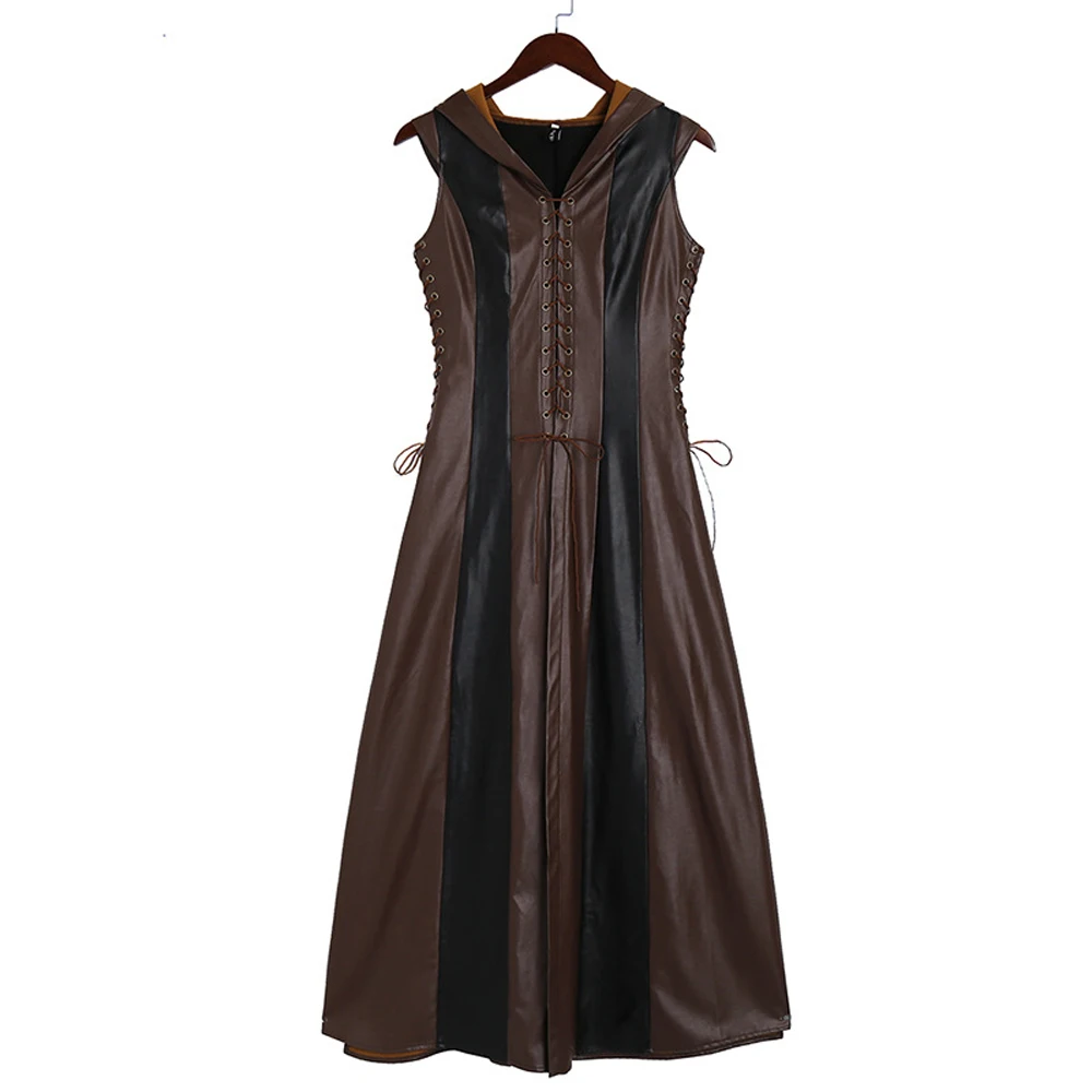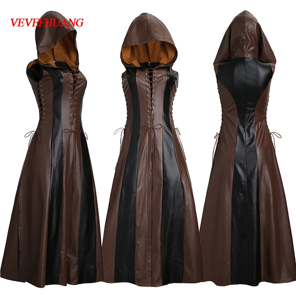 VEVEFUANG женское модное сексуальное тонкое кожаное длинное платье со шнуровкой средневековый рейнджер пальто для взрослых косплей женский костюм Хэллоуин