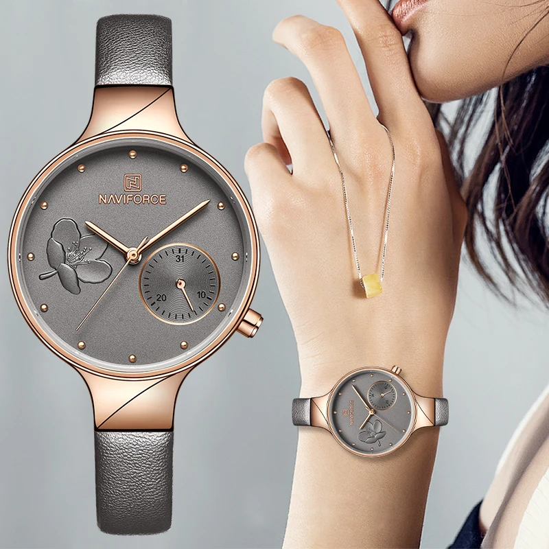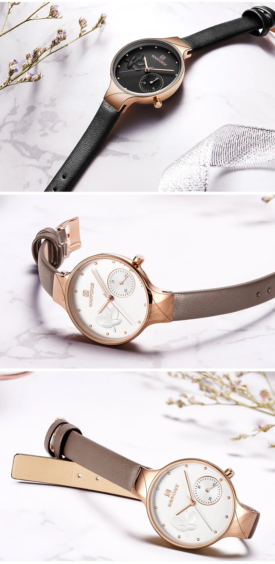 NAVIFORCE женские часы лучший бренд класса люкс, модные женские кварцевые наручные часы, женские кожаные водонепроницаемые часы, женские часы