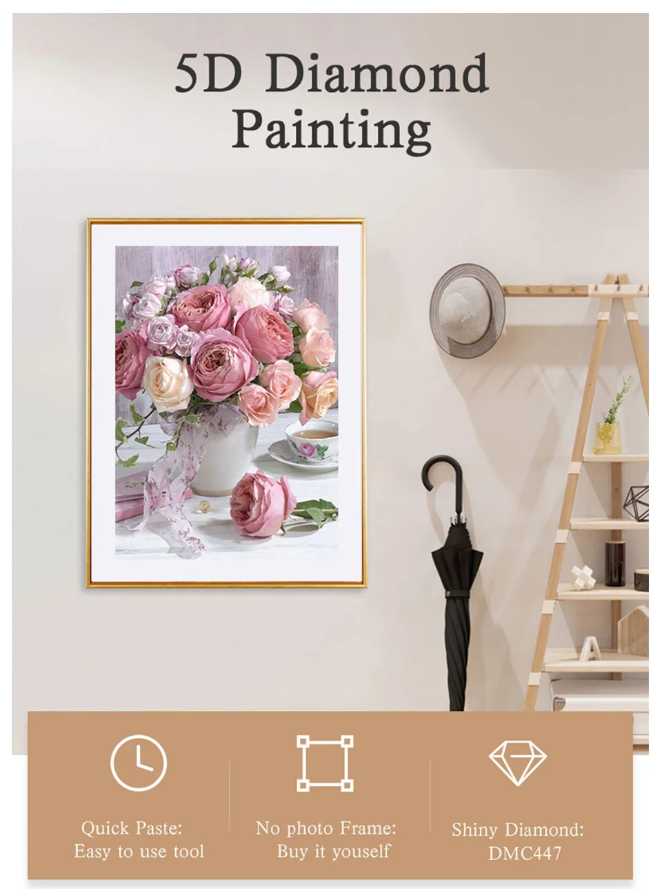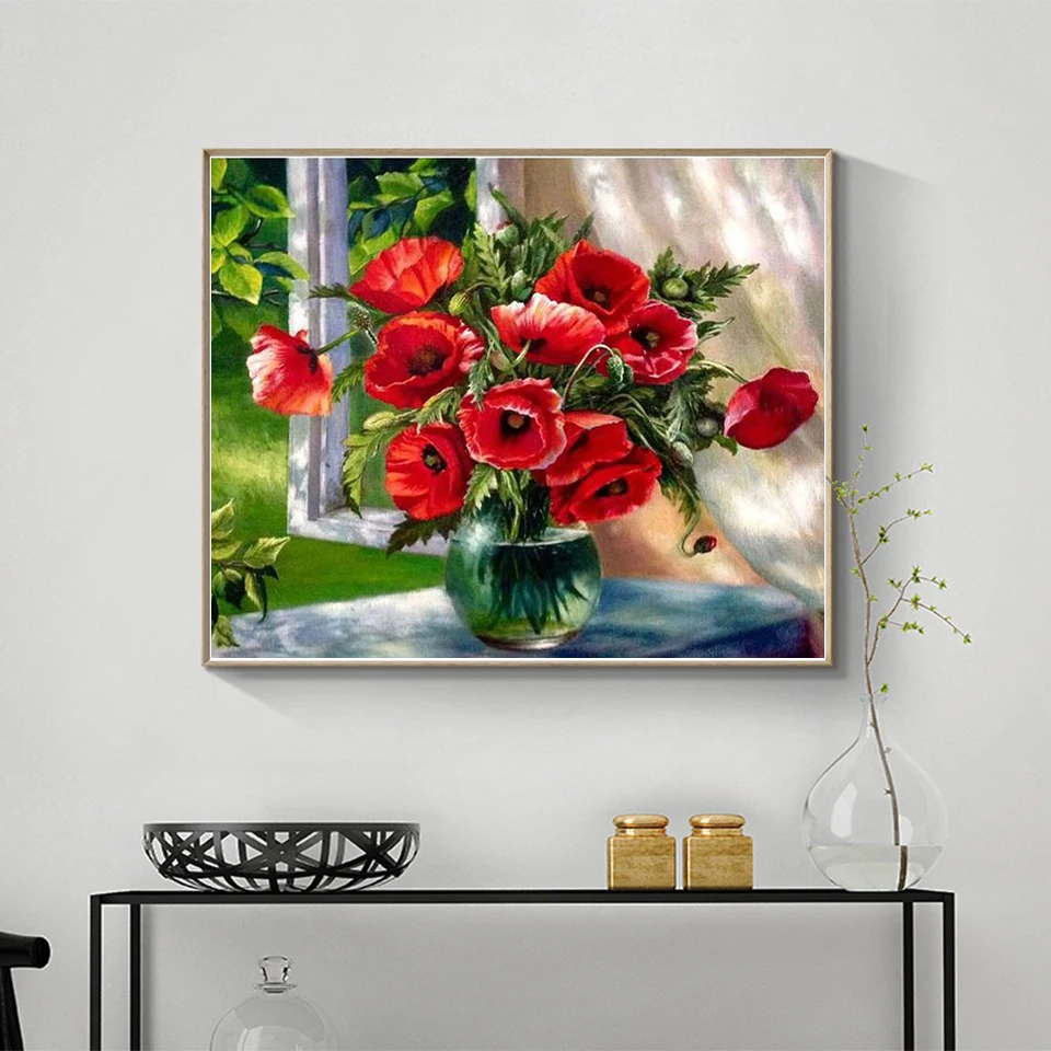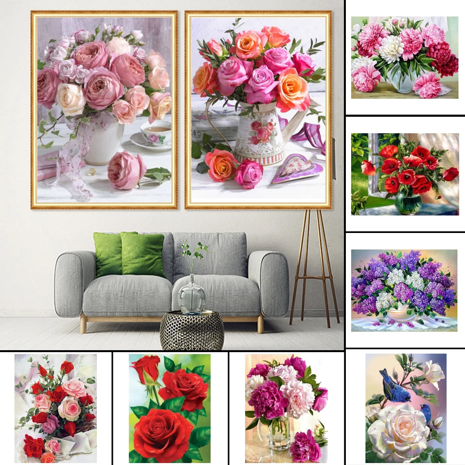 Картина для алмазной вышивки 5D "сделай сам", ваза с цветами, Набор для вышивки крестиком, квадратная мозаика, картина для стразы, Декор, подарок
