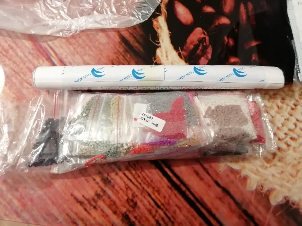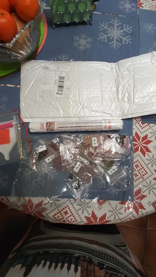 доставка в срок. очень качественная упаковка. холст в отдельной упаковке - тубе. цвета печати как на картинке. количество страз вроде норм. в комплекте качественный карандаш для страз и пинцет. достойный набор. продавец положил подарок - красную верёвочку на запястье. всем рекомендую продавца.