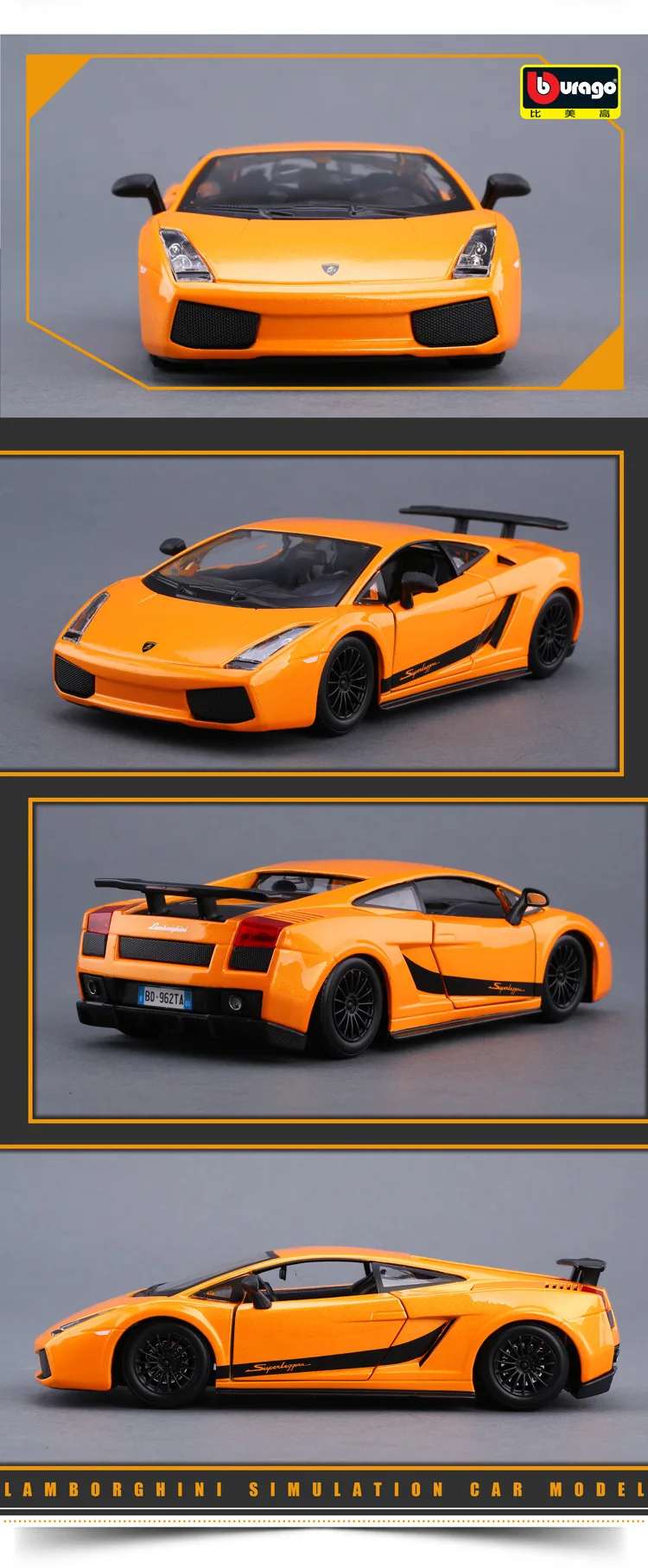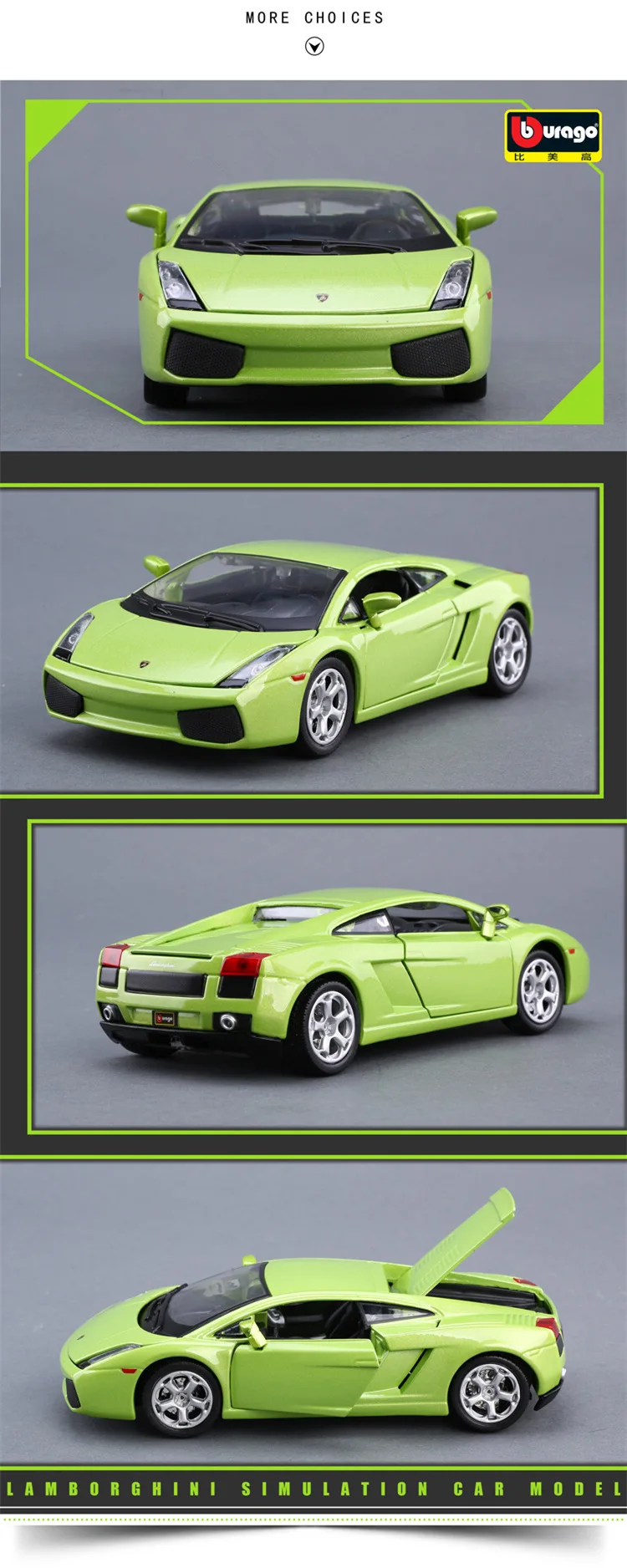 Модель автомобиля Bburago 1:24 Lamborghini Gallardo из зеленого сплава, модель автомобиля, украшение, коллекция, Подарочная игрушка