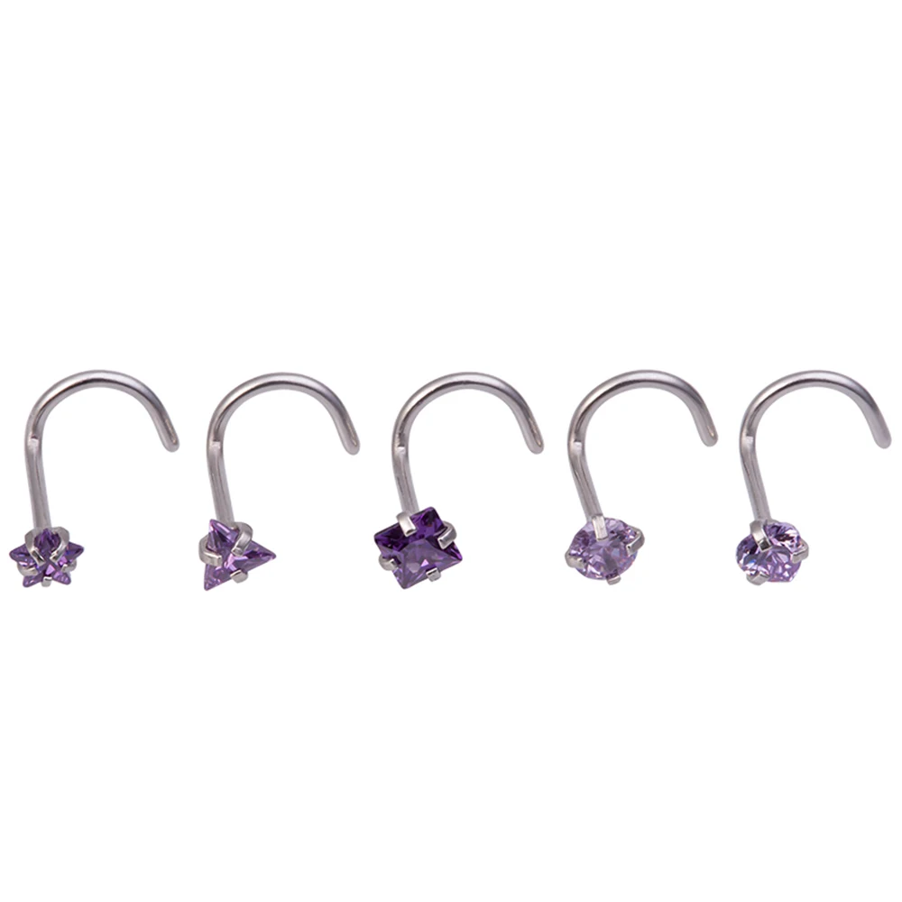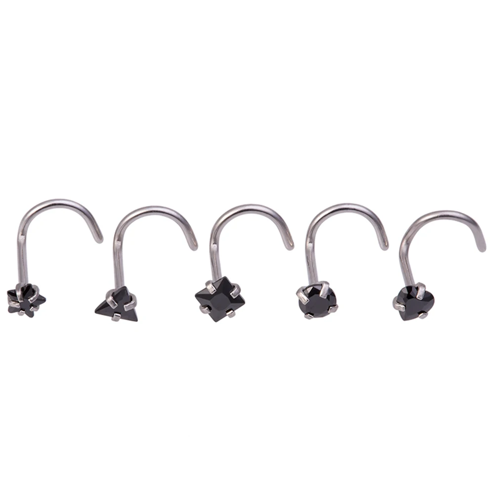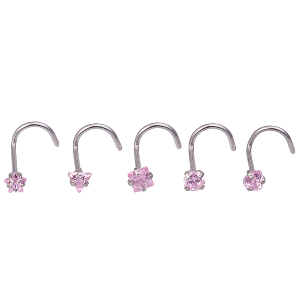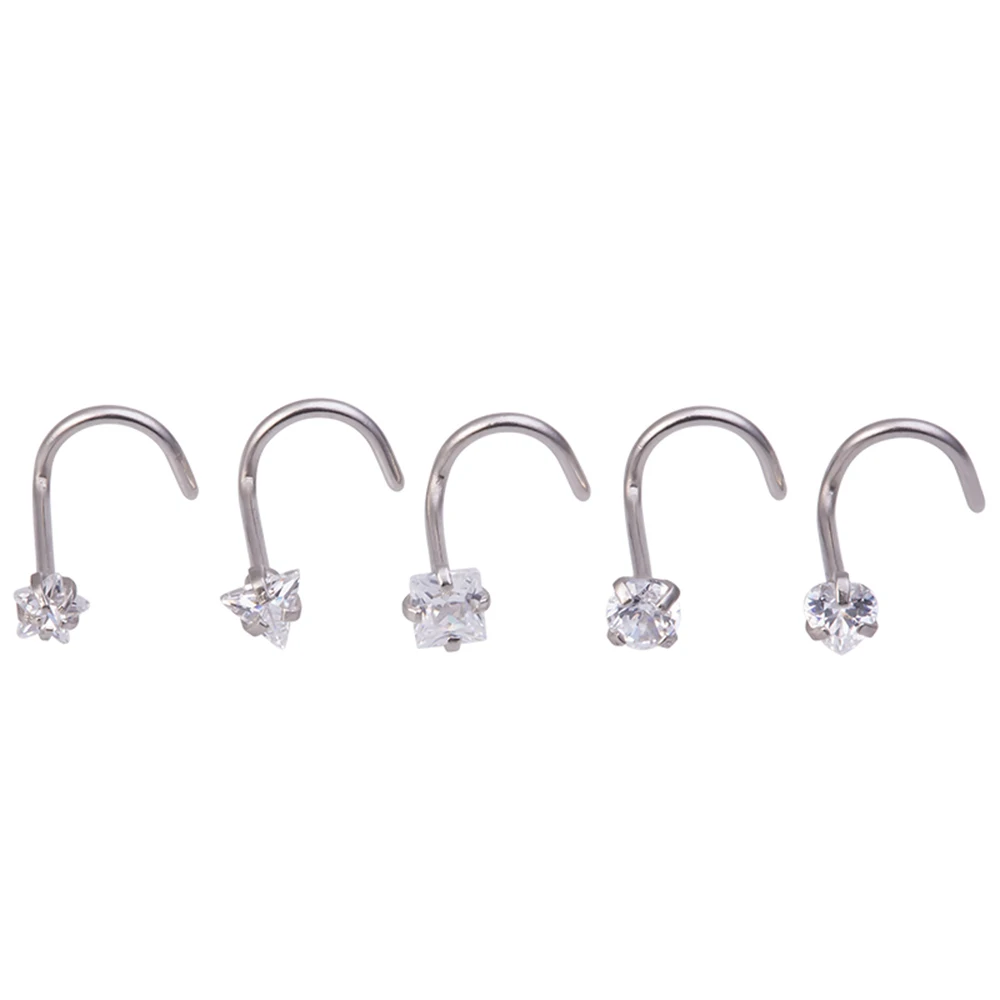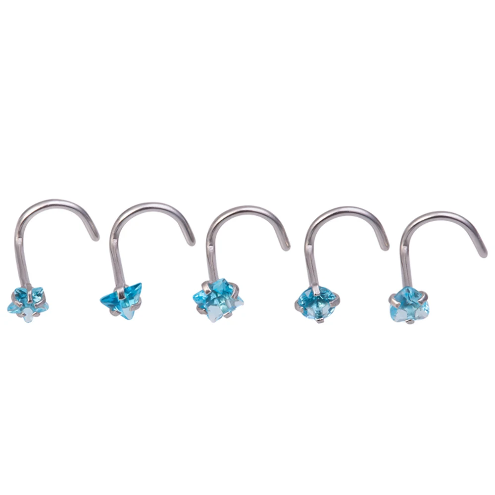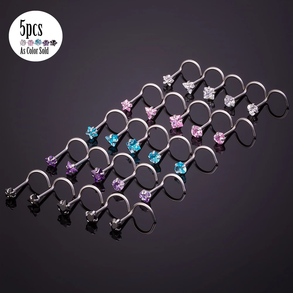 Серьги-гвоздики HONGTU из нержавеющей стали для пирсинга ноздрей, ювелирные украшения для носа, декор Фианит, Хрустальный пирсинг, звезды, 20 г, 5 штук в 1 партии