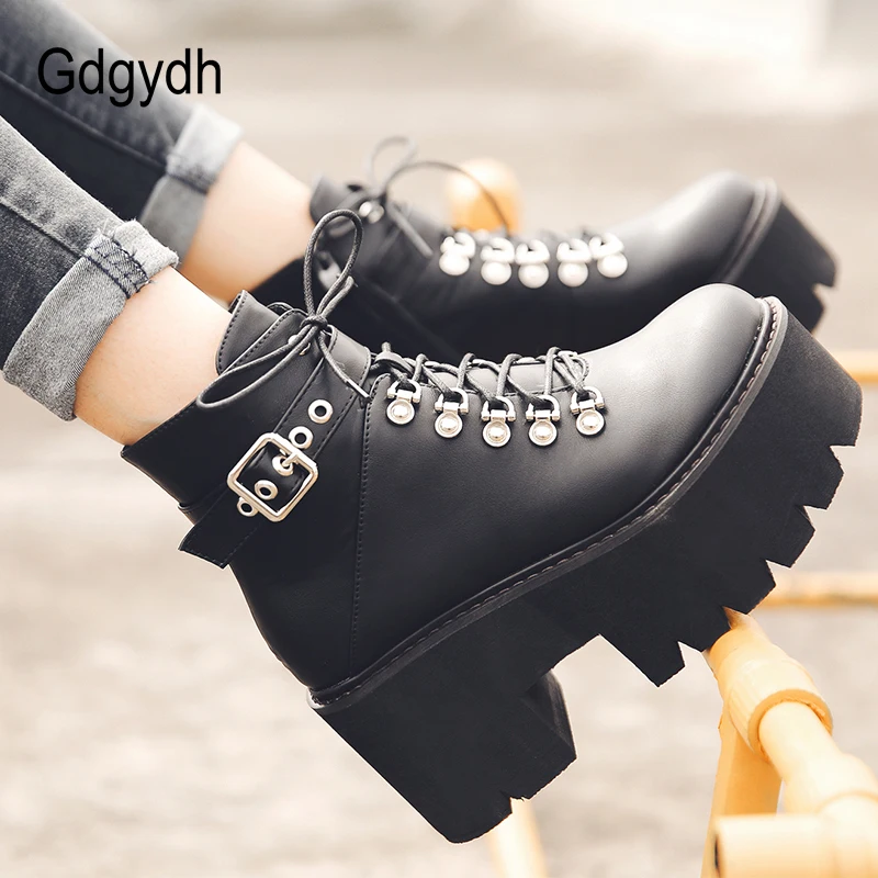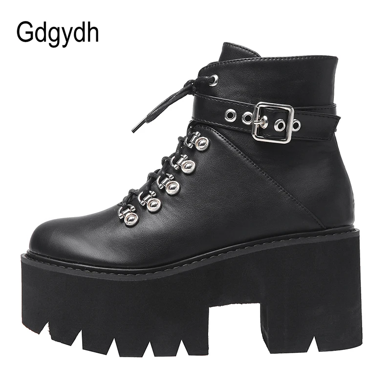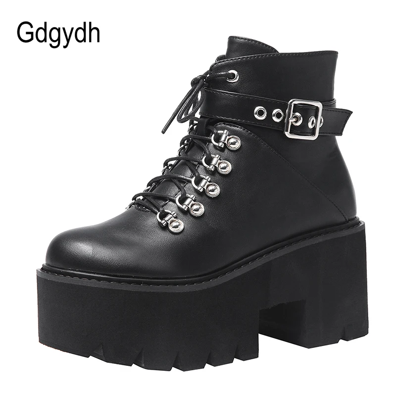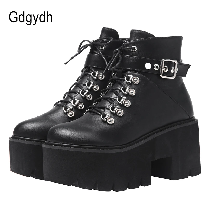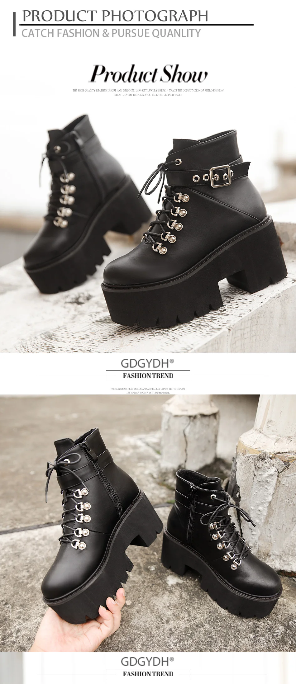 Женские ботинки на платформе и массивном каблуке Gdgydh, черные готические сапоги ботинки на шнуровке с плюшевой подкладкой и пряжкой на осень-зиму
