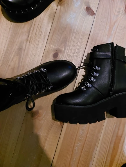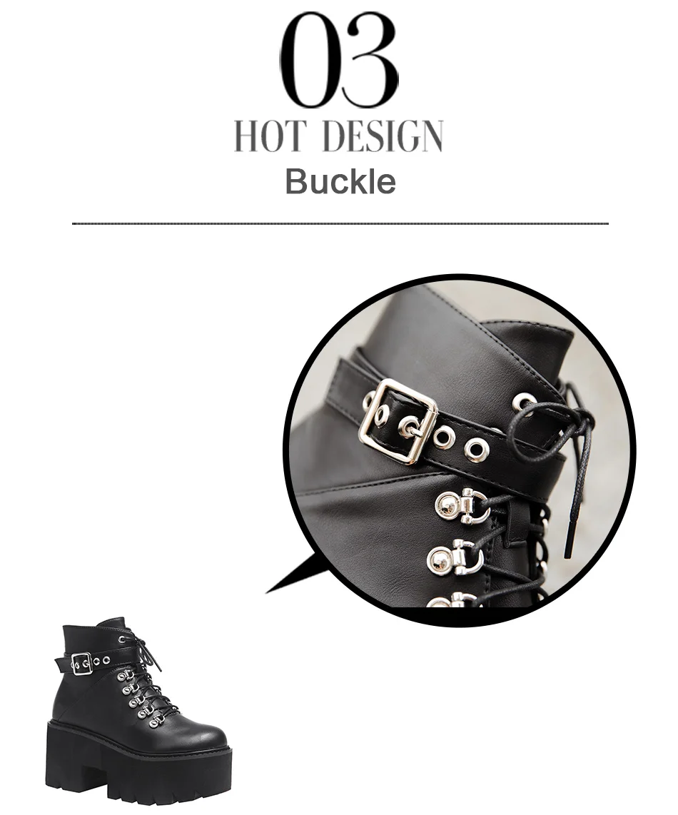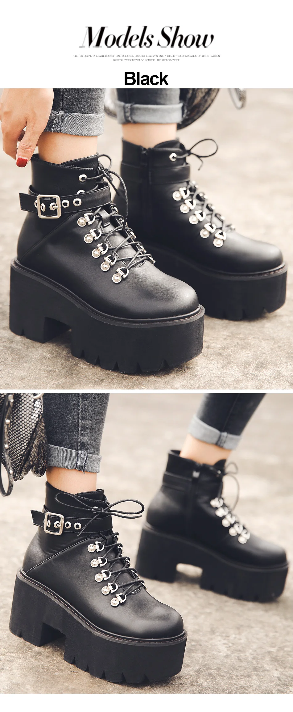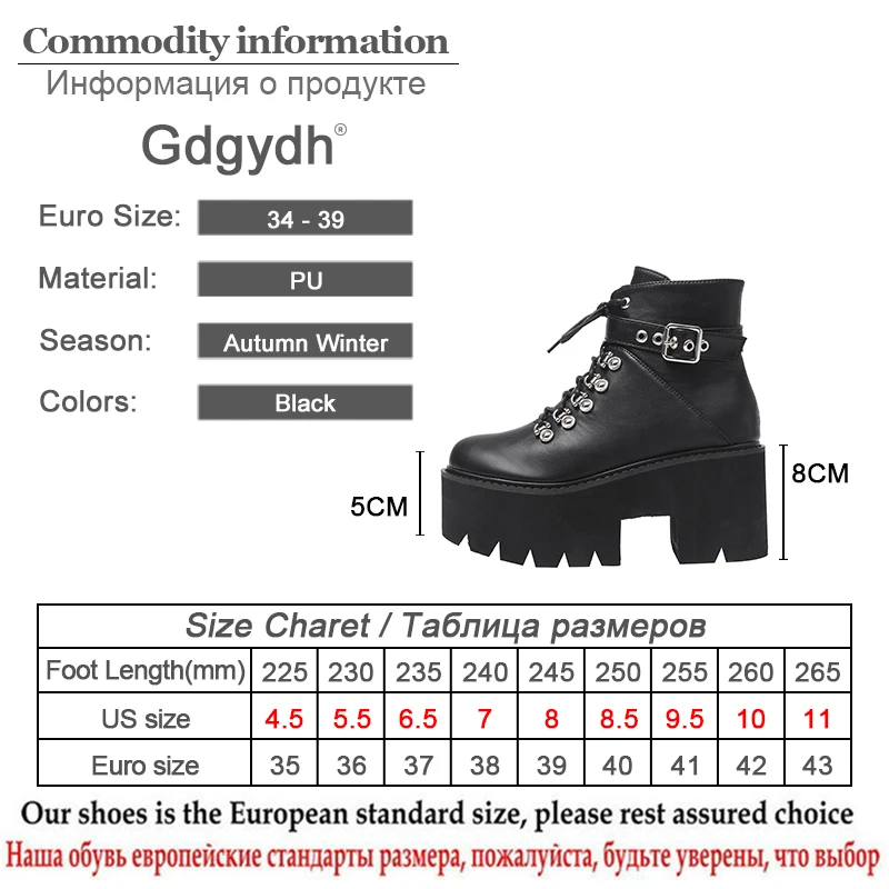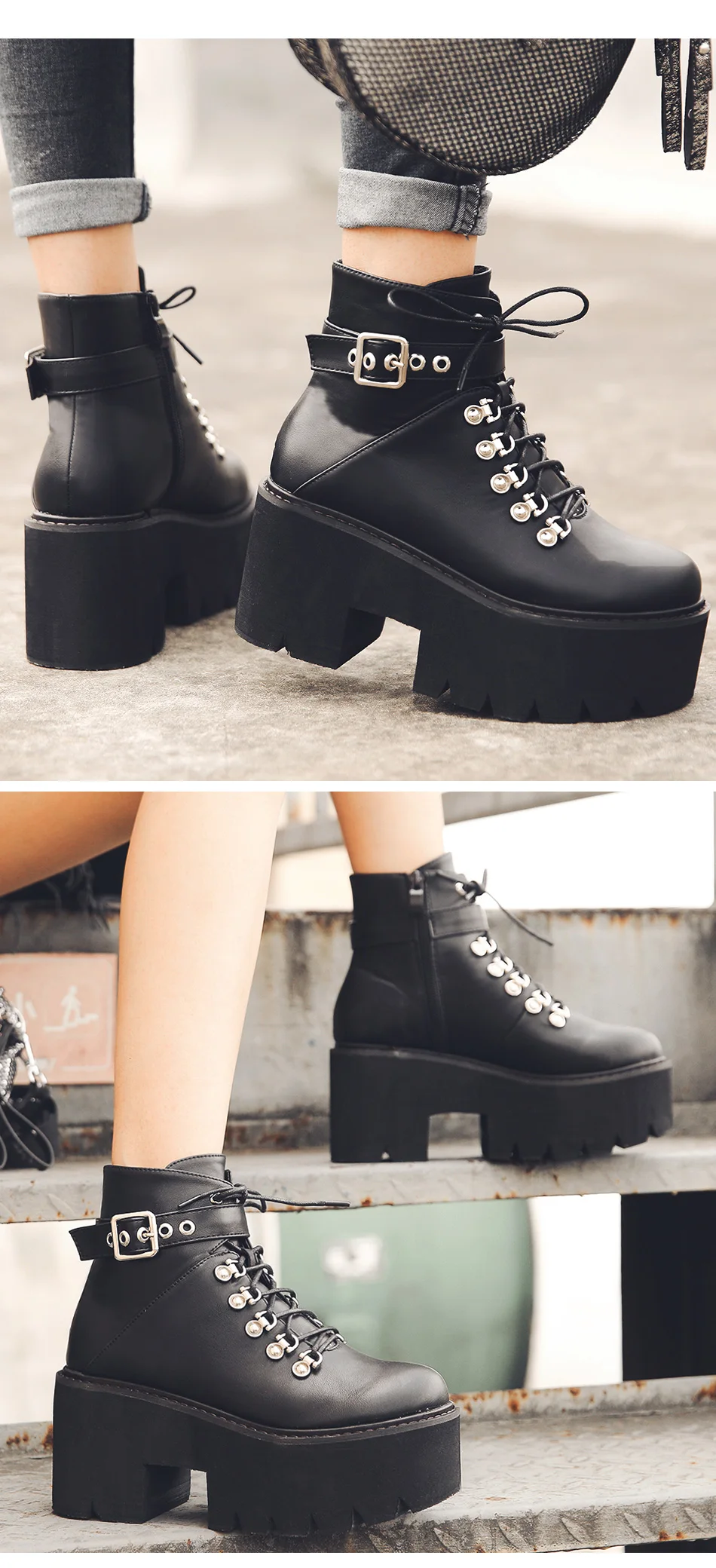Женские ботинки на платформе и массивном каблуке Gdgydh, черные готические сапоги ботинки на шнуровке с плюшевой подкладкой и пряжкой на осень-зиму