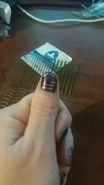 Пришли ленты очень быстро. Очень просты в использовании, хорошо сгибаються под ноготок и легко клеится. Очень довольна, закажу ещё