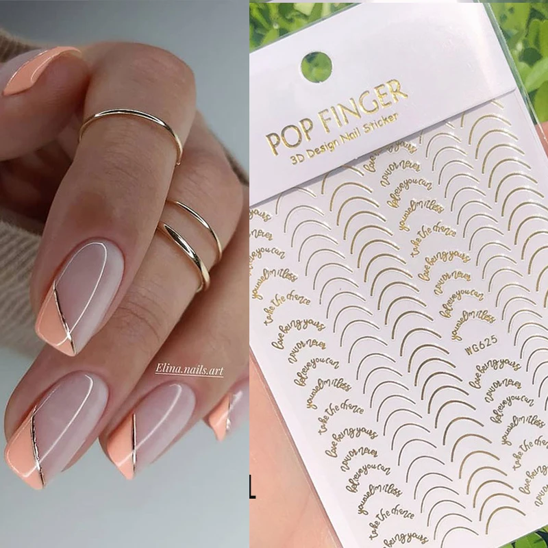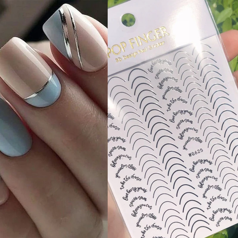 Золотые 3D наклейки для ногтей, изогнутые полоски, наклейки для ногтей, градиентная клейкая лента, фольга для ногтей, наклейки для ногтей, серебристые