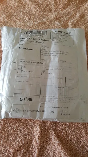 Заказ прибыл в хорошем состоянии; Он должен улучшить доставку быстрее, так как Колумбийская таможня очень строгая с налогами. Доставка была отложена, потому что я сделал это в августе. Моя рекомендация состоит в том, чтобы ускорить поставки. Спасибо и хорошего дня.