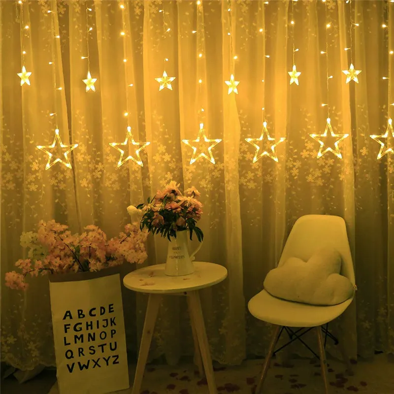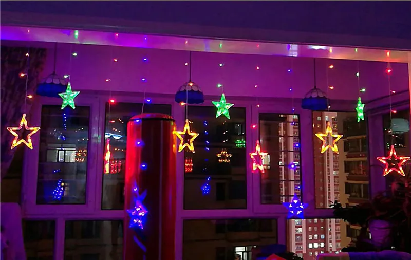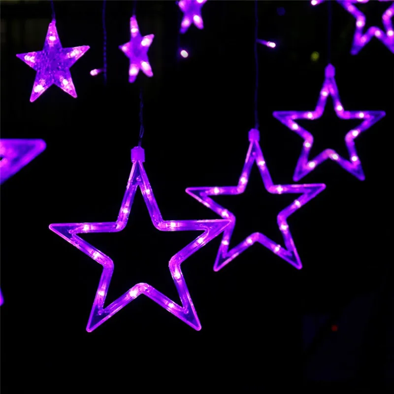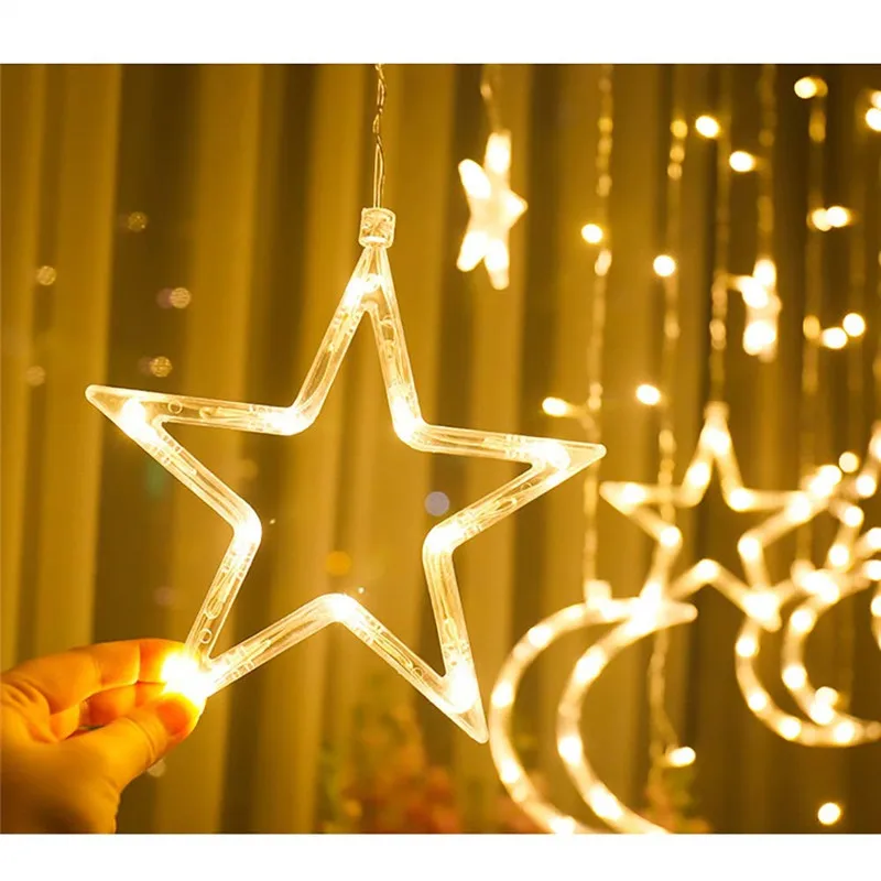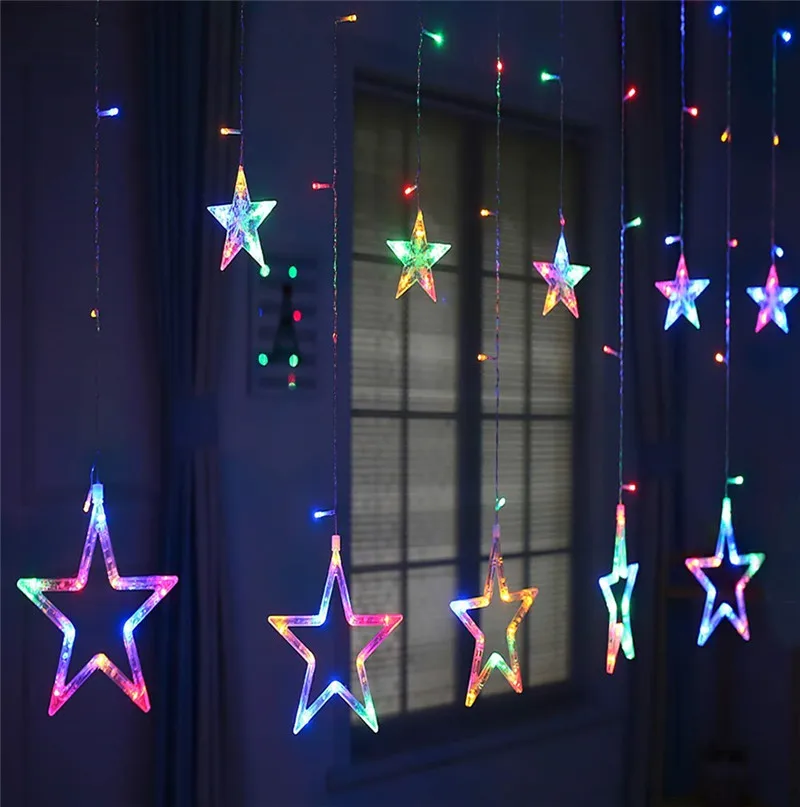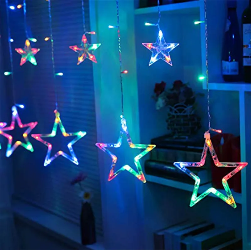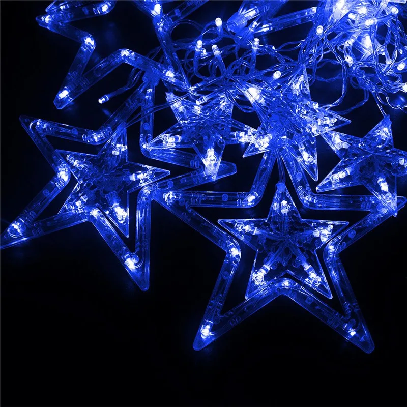 Светодиодная гирлянсветильник-занавес с дистанционным управлением, 12 звезд, 138 светодиодов, гирлянда-сосулька на окно, 8 режимов, Рождественский свет, уличный декор, свадьба, дом