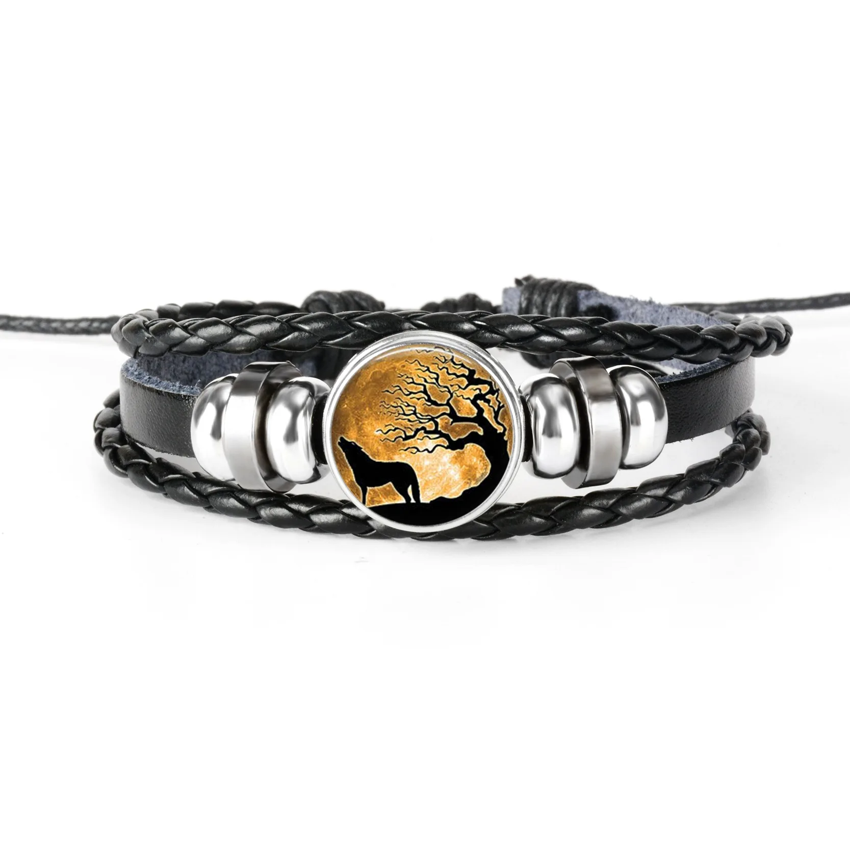 Браслет мужской кожаный, с изображением волка и полнолуния, 1 шт.