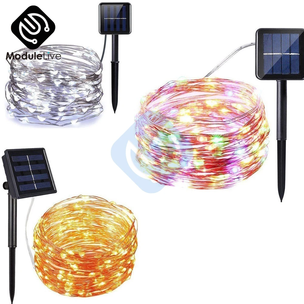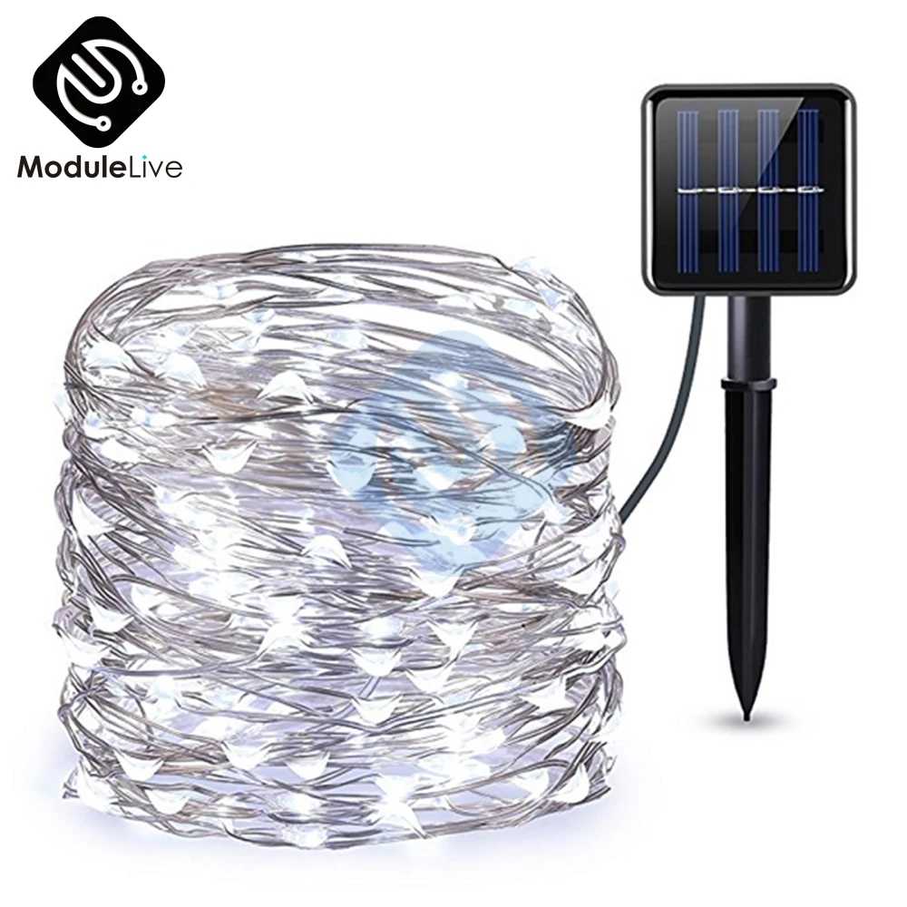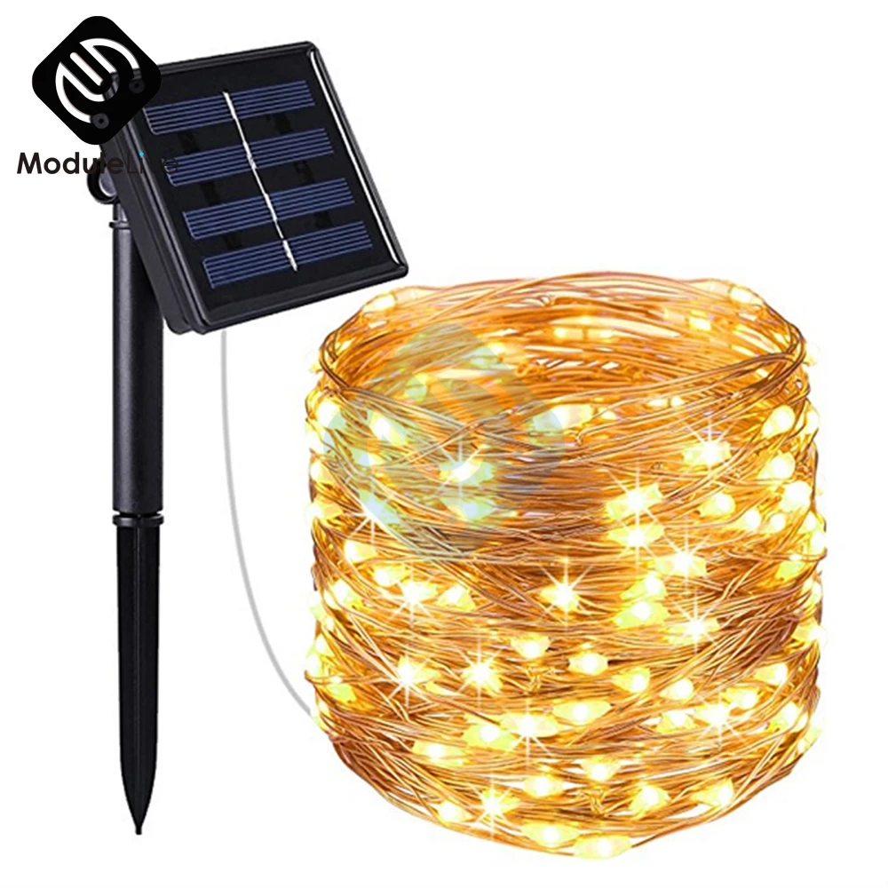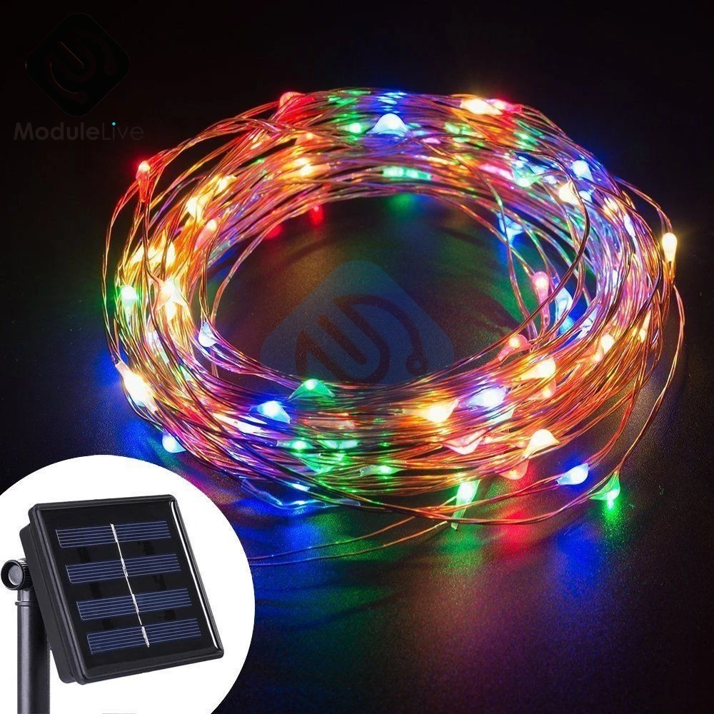 Открытый Солнечный 33 фута 100 LED 10 М медный провод свет гирлянда Фея Рождественская вечеринка