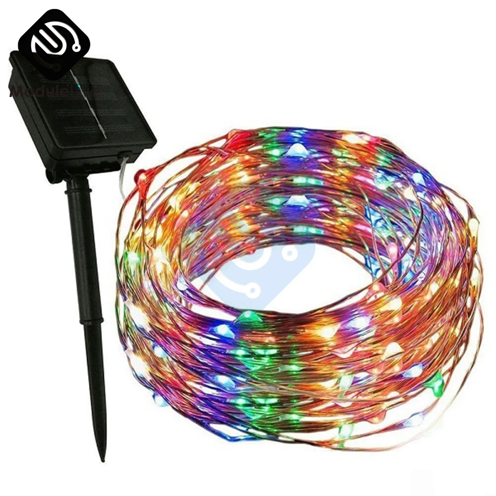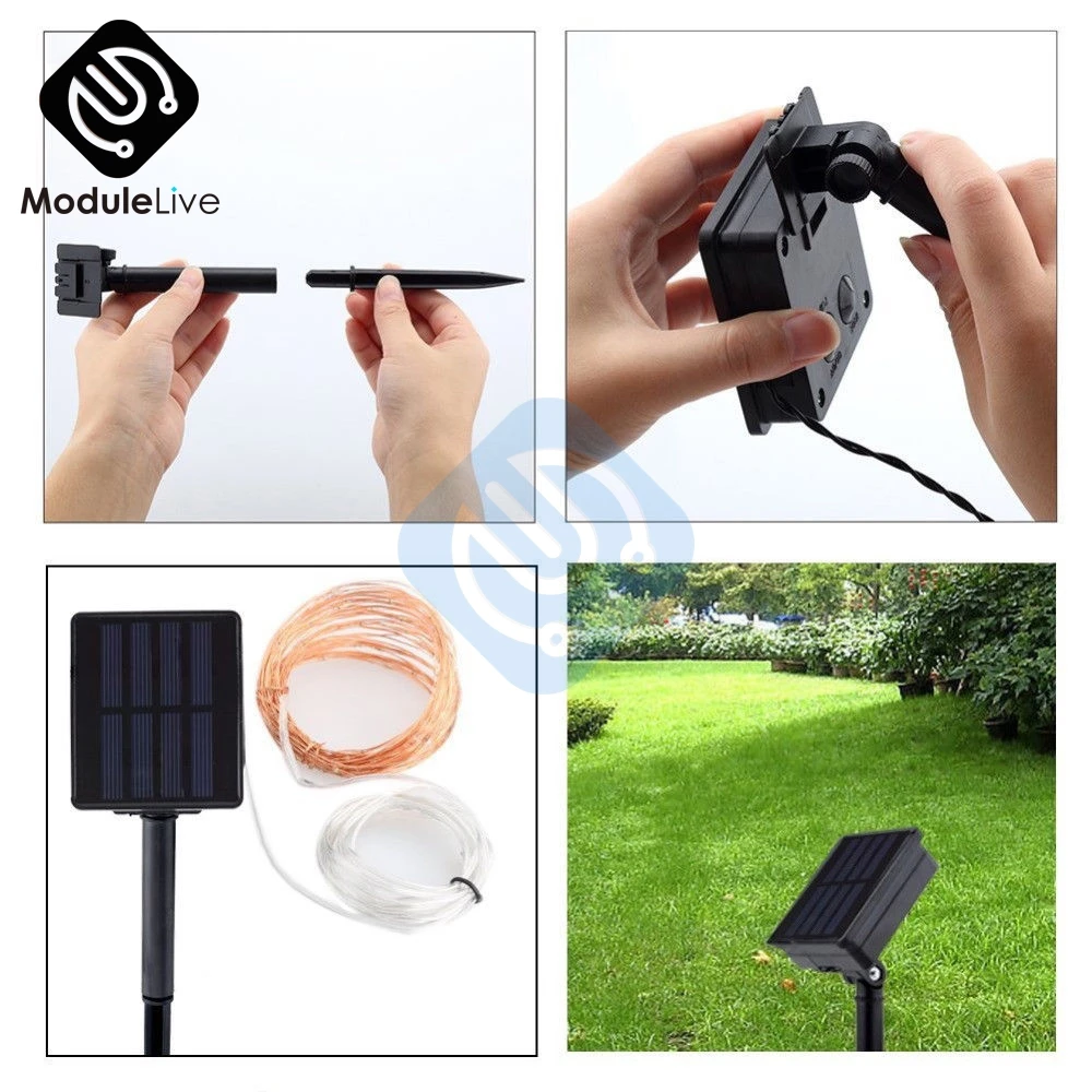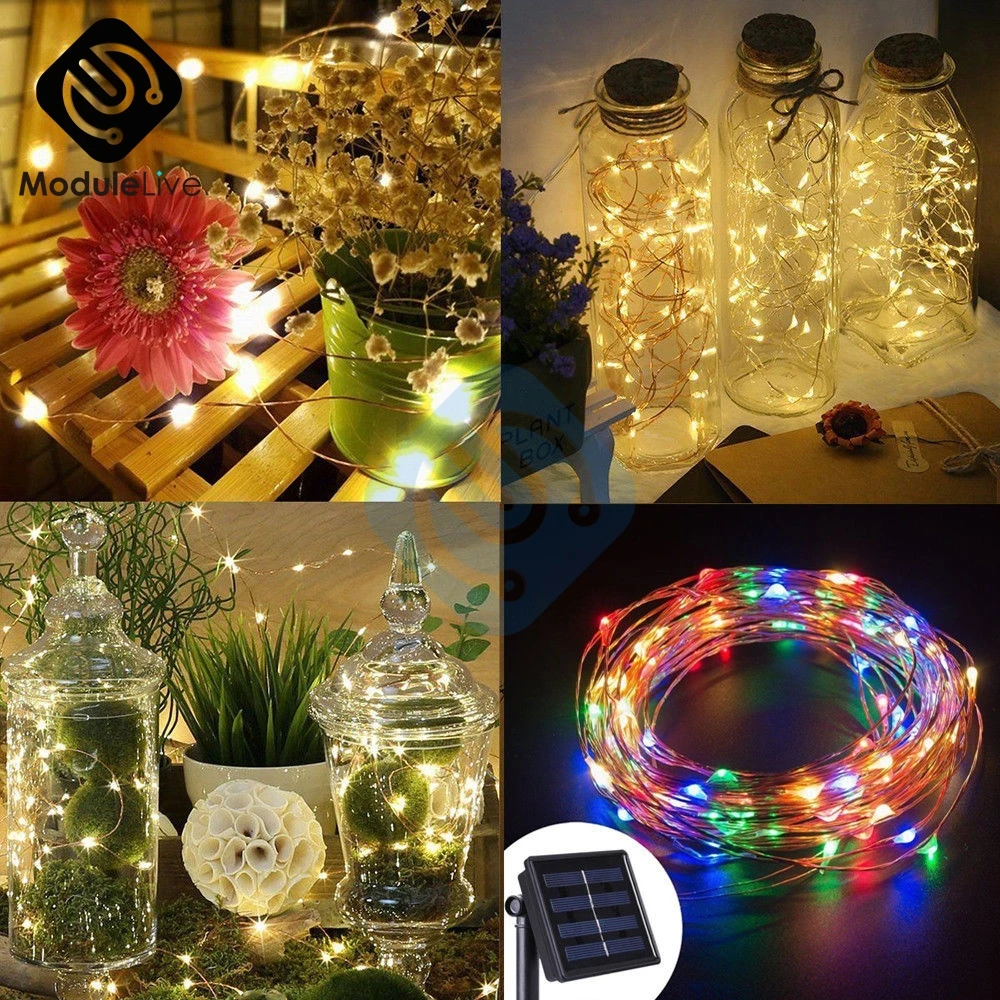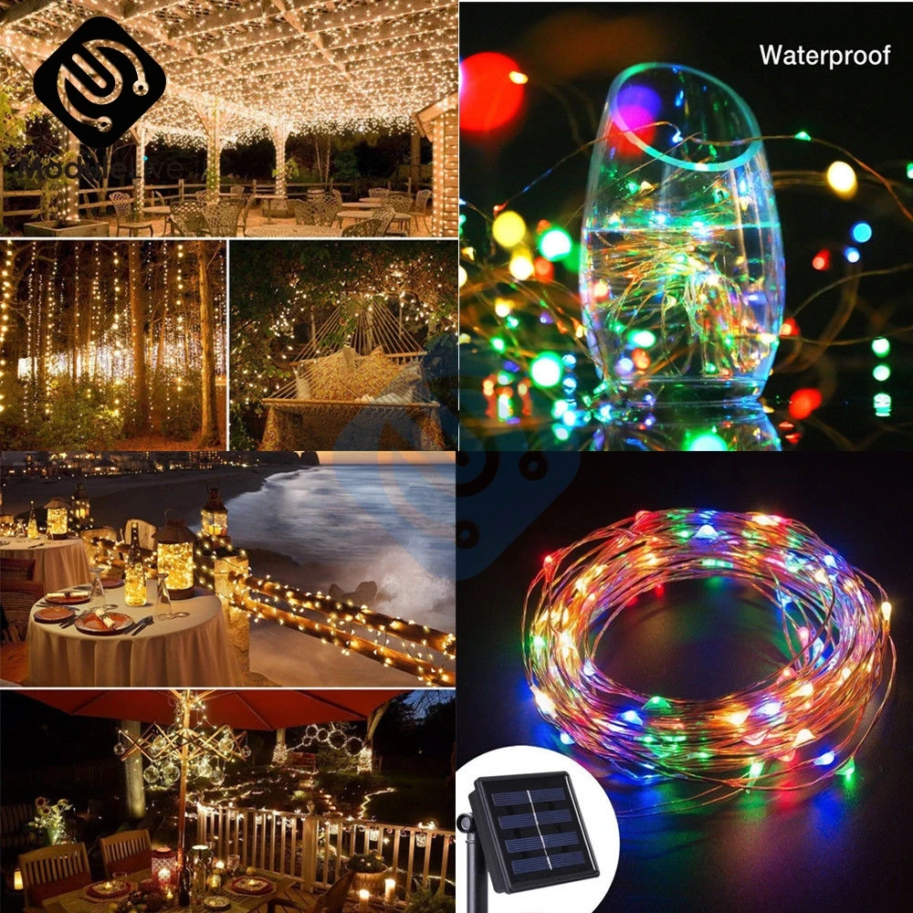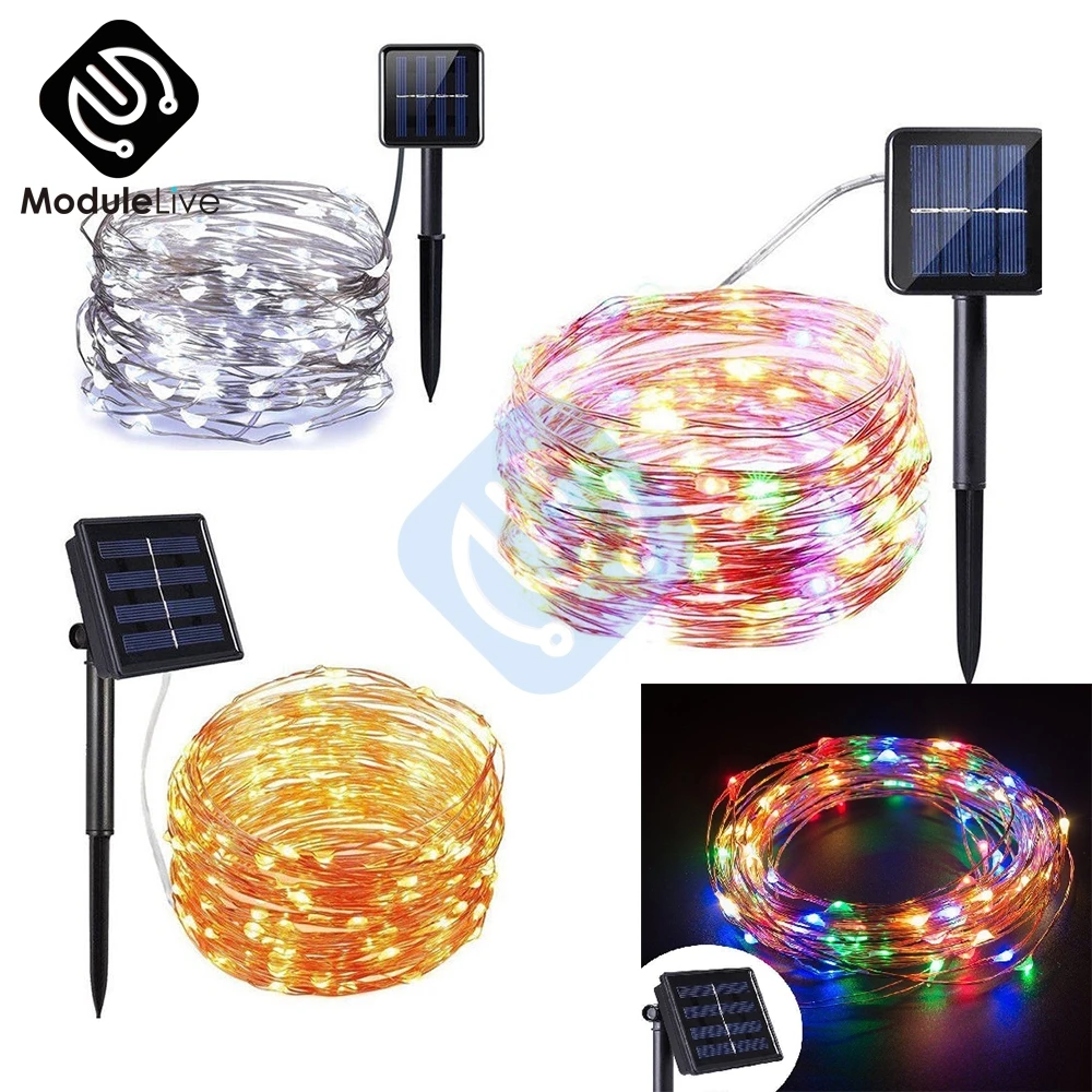 Открытый Солнечный 33 фута 100 LED 10 М медный провод свет гирлянда Фея Рождественская вечеринка