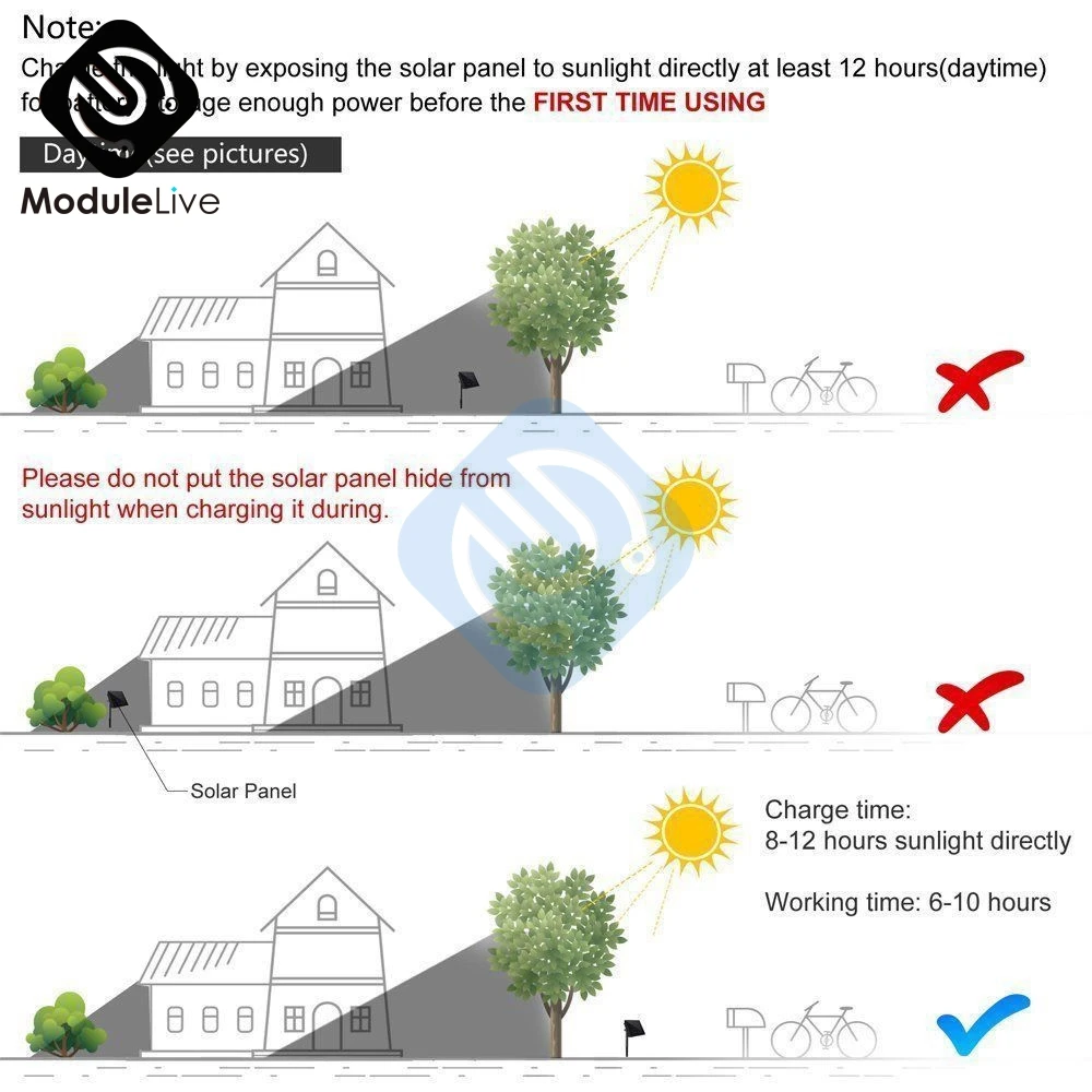 Питание: солнечная энергия (когда солнечная панель не обращена к любому свету, светодиоды будут работать.) Примечание: