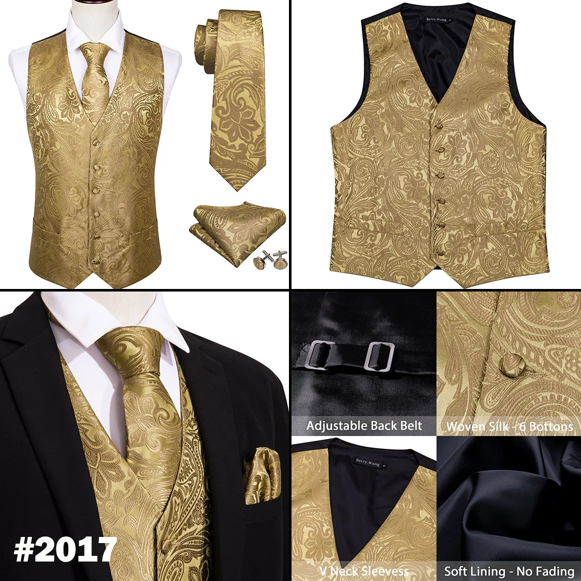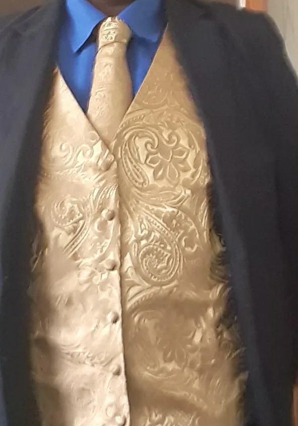 Мужской жилет из Экстра шелка, однотонный золотистый жилет с принтом Пейсли вечерние нагрудный квадратный галстук, костюм Barry.Wang BM-2017, 4 шт.