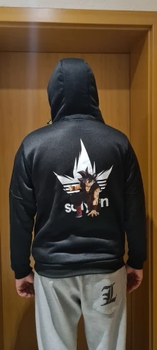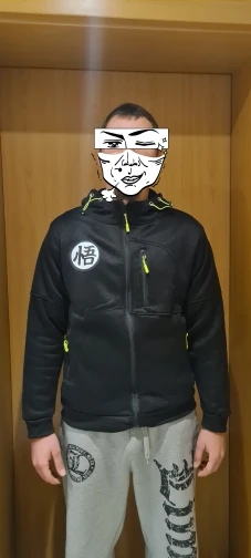 Размер немного отличается. Не очень тонкий. Размер XL немного Коротковат в рукавах и длине, но размер XXL будет большим. Капюшон может быть больше, чтобы лучше поместиться на голове. Рисунок быстро оторвется, я думаю. Но цена отличная