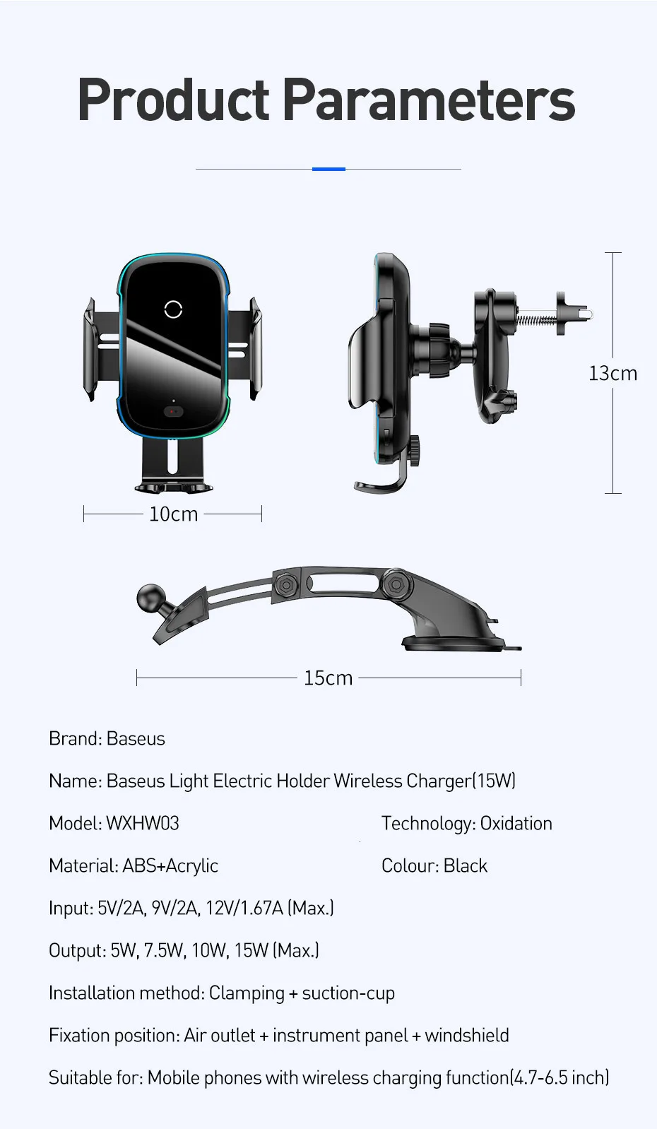 Автомобильный держатель-зарядка для телефона BASEUS, универсальный, 15Вт, беспроводная зарядка