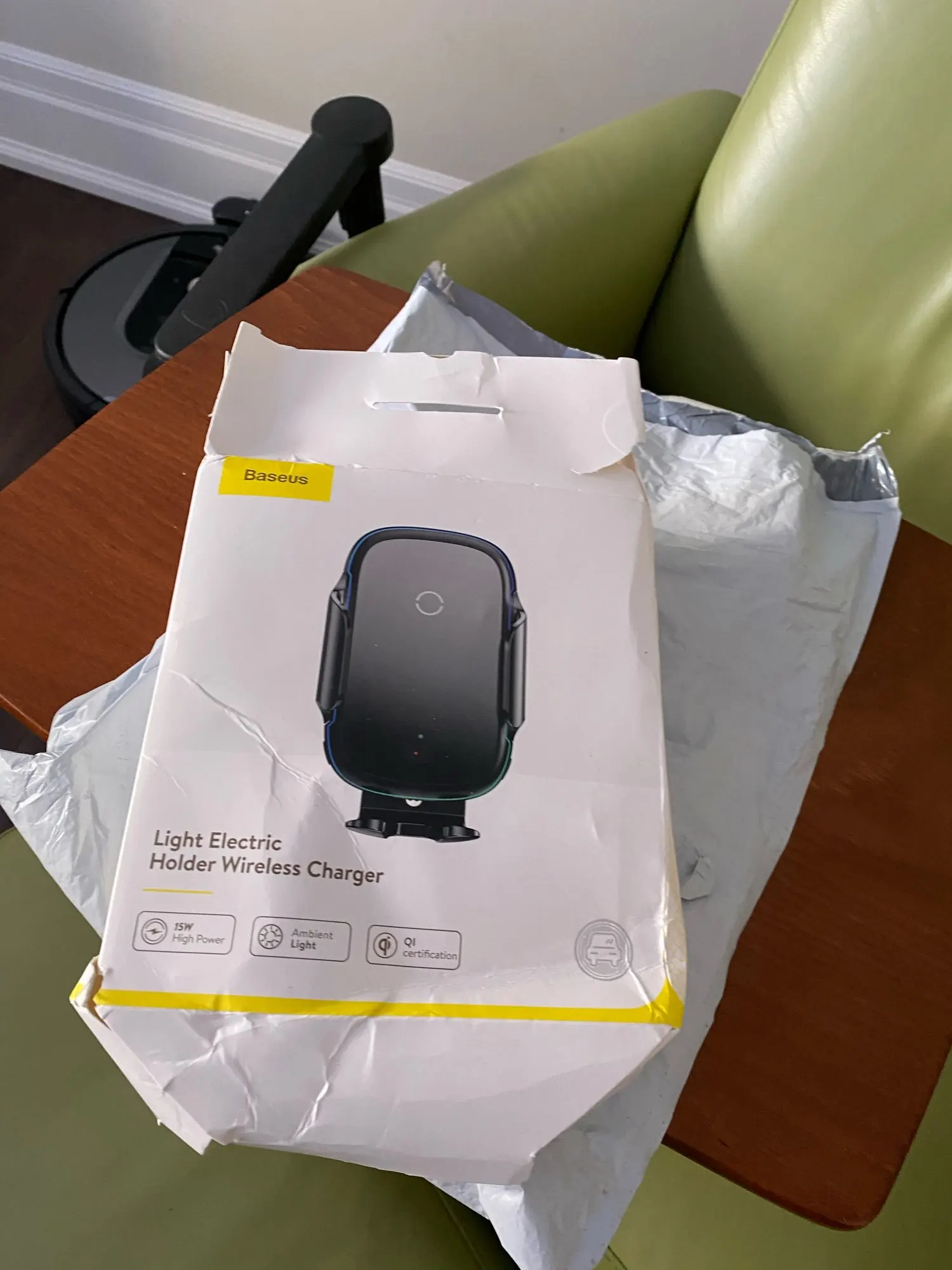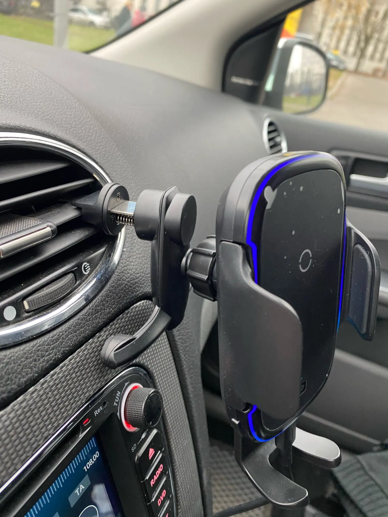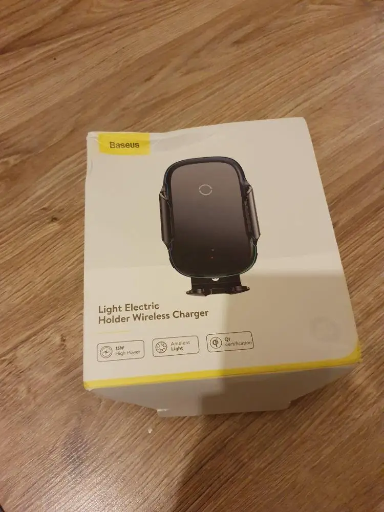 Товар пришел довольно быстро. Коробка помята, но внутри всё целое. Держатель красивый, удобный. При заводе машины сам открывается. А вот 15 ватт пока не удалось добиться. Возможно блок питания нужно сильнее. У меня 2 Ампера/5 вольт. А он принимает до 12 вольт. В целом доволен покупкой.