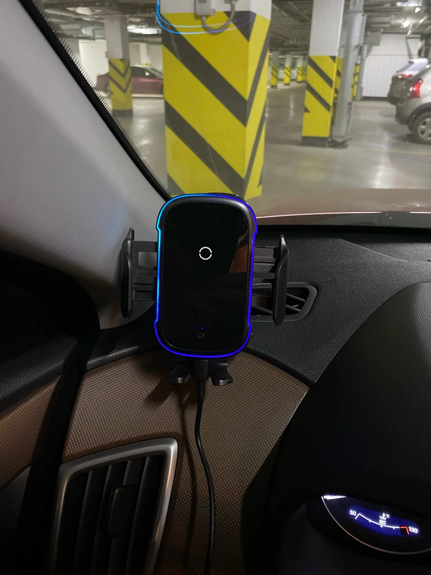 Заряжает iPhone XS примерно на 30-40% за час. Не скрипит. Держится крепко. Подсветка и автоматическое открывание работают отлично. Приятно когда заводишь машину, и подставка сама открывается.