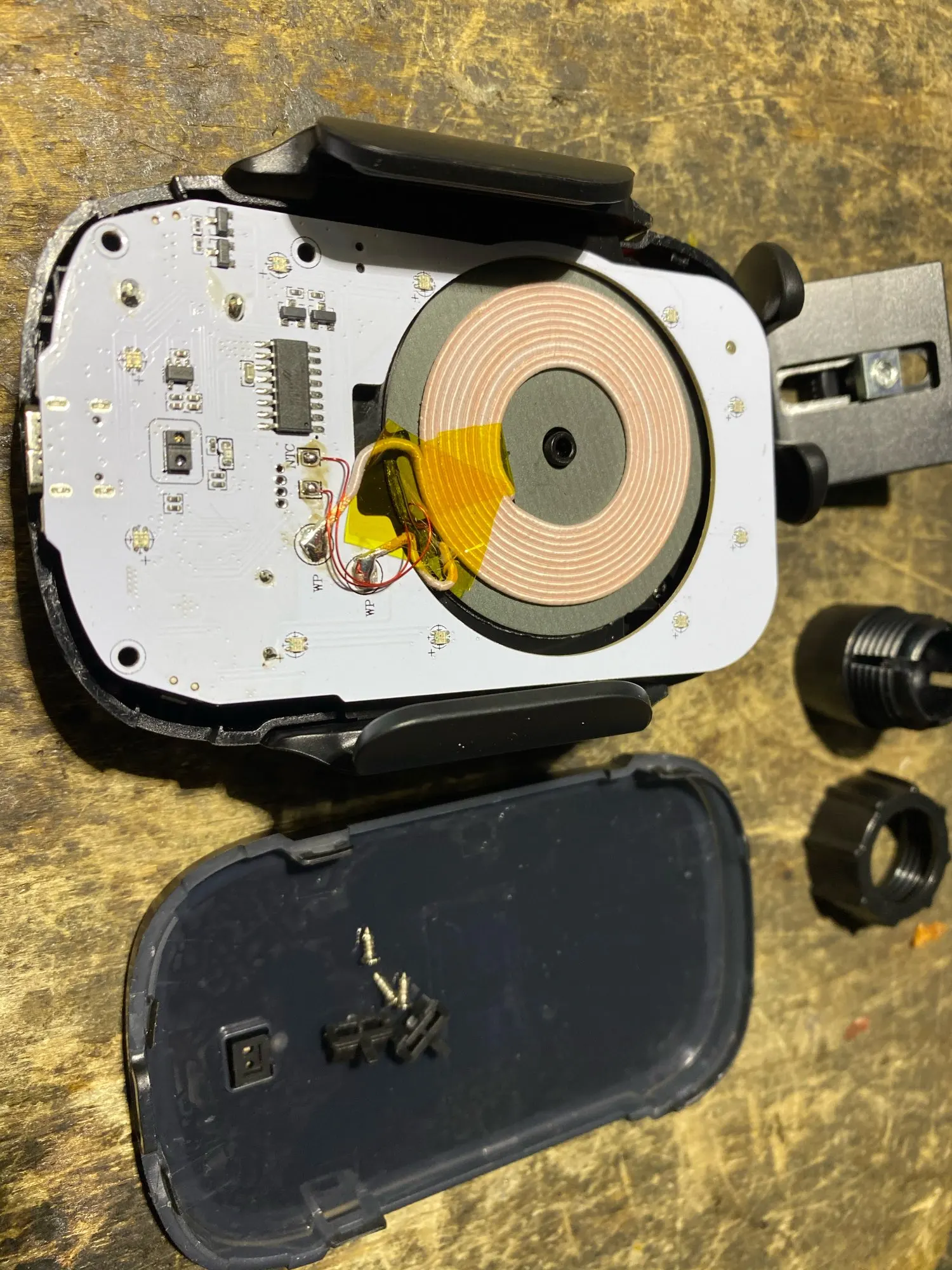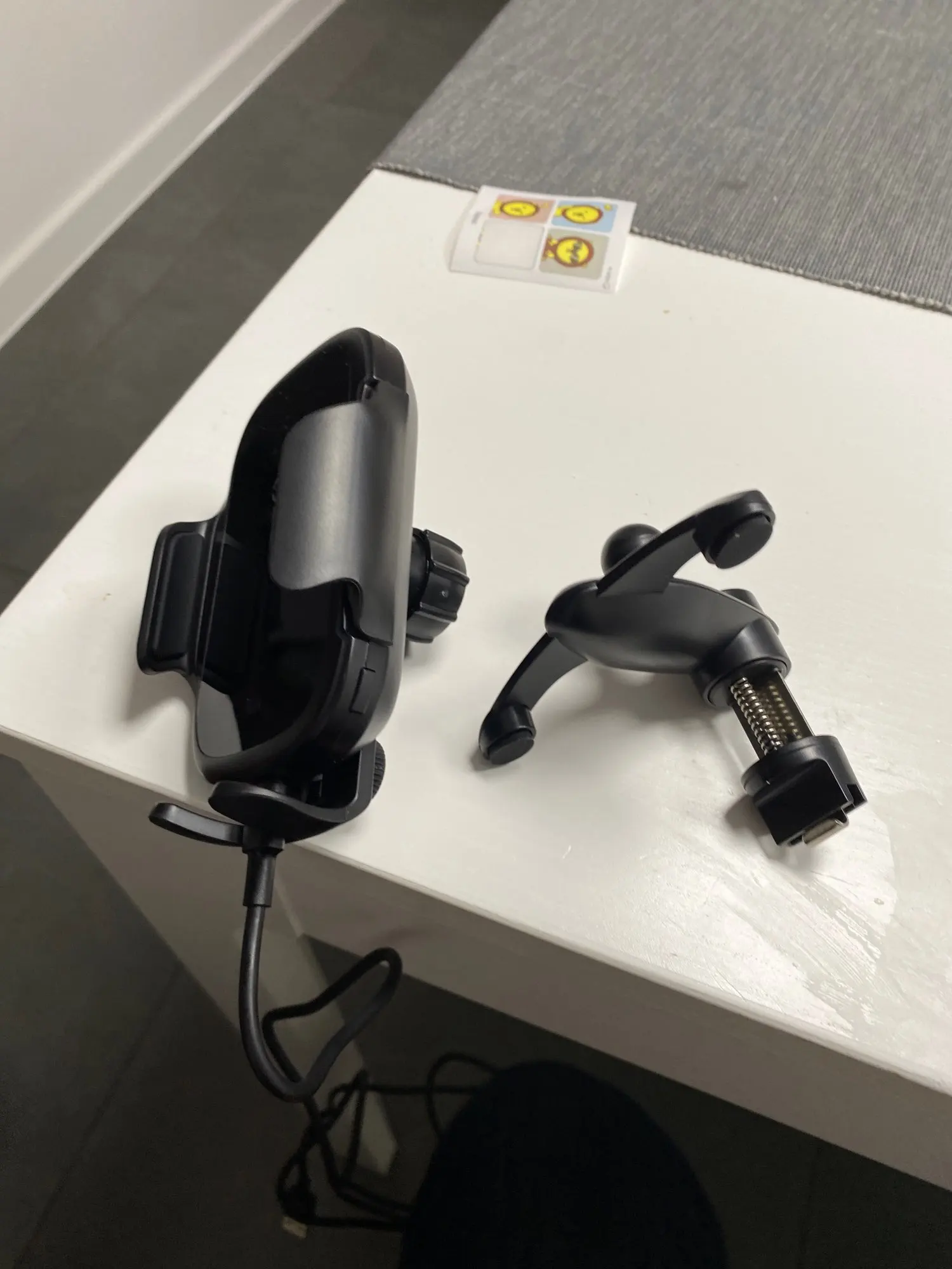 Заказал беспроводную зарядку и зарядный в прикуриватель у одного продавца. Шли разными посылками без отслеживания 2 недели. Все работает. Держатели моторизированные, активируются кнопками с боков снизу. Не очень удобно. Почему китайцы не догадались поставить сенсорный датчик? Исправляем это. Аккуратно открываем корпус - на защелках, берём модуль на TTP-223 и подключаем ко кнопке через любой npn биполярный транзистор или N канальный мосфет, между выходом модуля и базой (или затвором) ставим резистор от 100 Ом до 1кОм. Питание модуля берём с + суперконденсаторов (два последовательно по 3Ф каждый, обеспечивают 7 циклов открыть-закрыть после отключения питания), минус - корпус разъема USB-C или нижний вывод кнопки. Модуль доработать по схеме, кондер керамика 1-6,8мкФ, помещаем в верхней части в нише и радуемся. При -15 замерзает и лапы не раздвигаются... (видимо конечник в редукторе) Надо салон греть. Убрал смазку - не помогло. Присоска с мастикой, хватает намертво. Заряжает 10Вт (9А 1А)