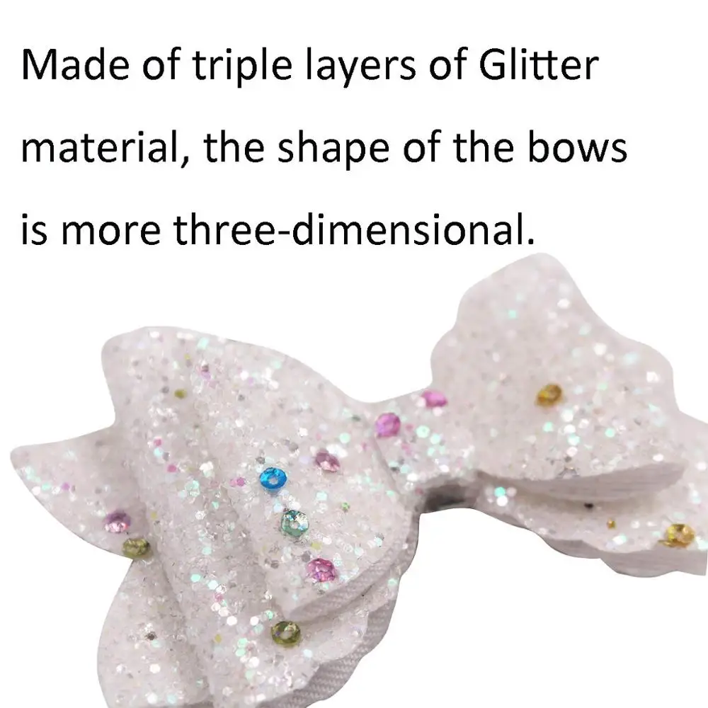 Банты для волос с блестками для девочек, 3 слоя, 3,35 дюйма, 16 шт.