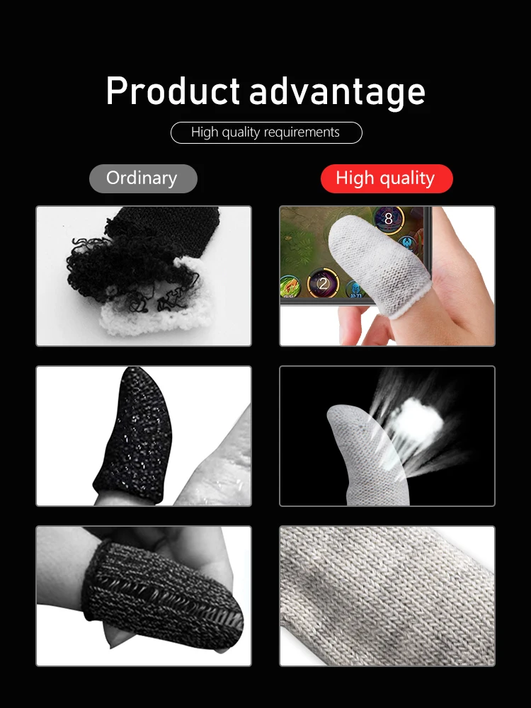 А. Изоляция от пота рук и контакта с экраном, противоскользящая, противоосенняя, маслостойкая, защита от отпечатков пальцев, также может улучшить навыки игры и избежать операционных ошибокB. Сочетание серебряного волокна и проводящего волокна делает рукав пальца более проводящим, более чувствительным к манипуляциям и более точным касанием игр