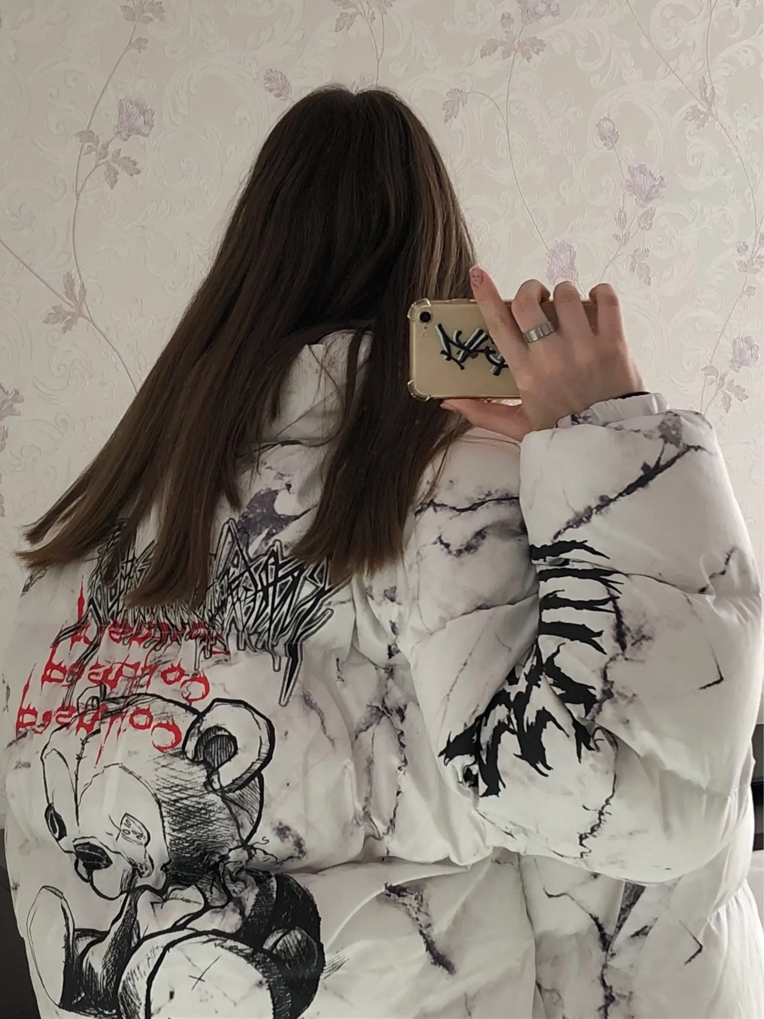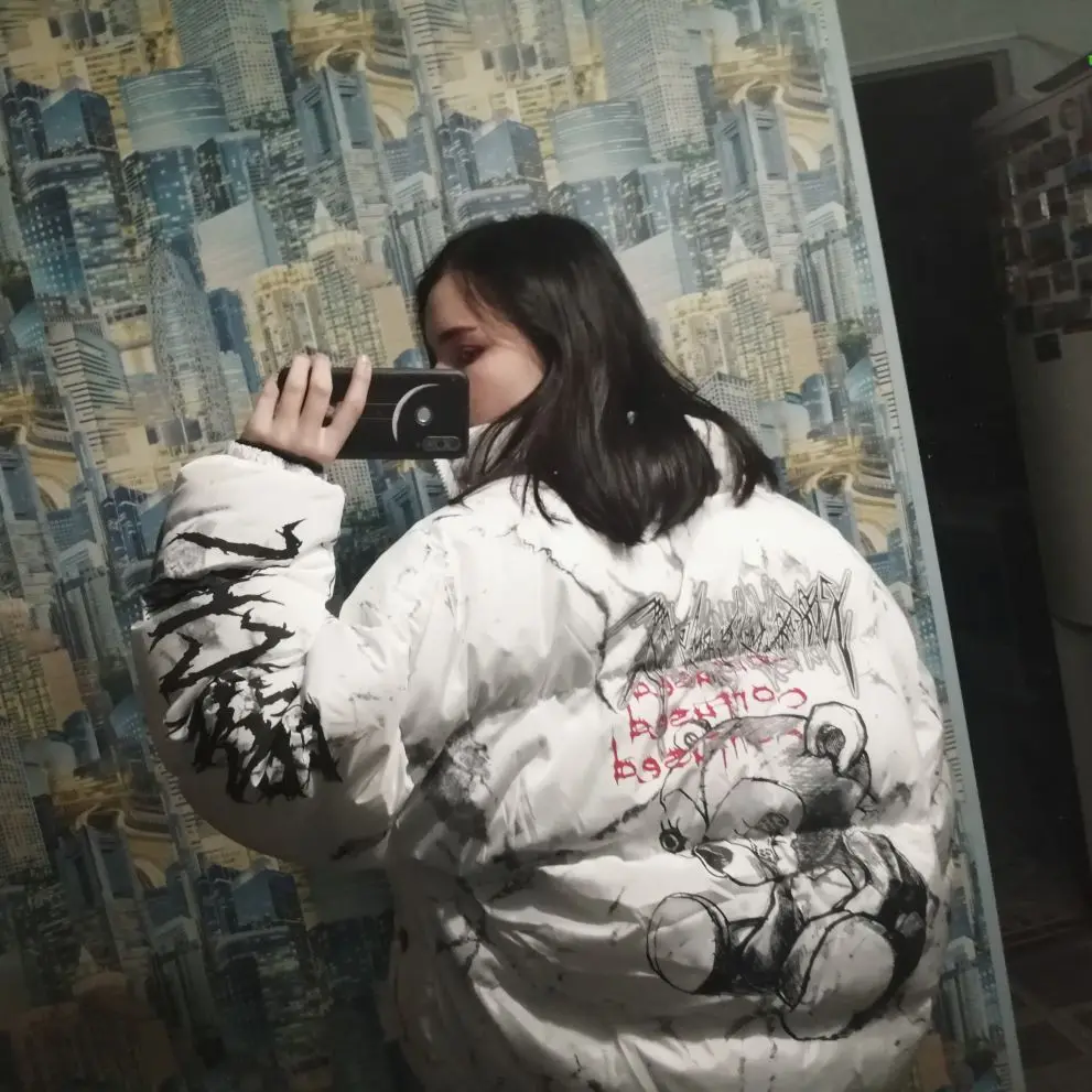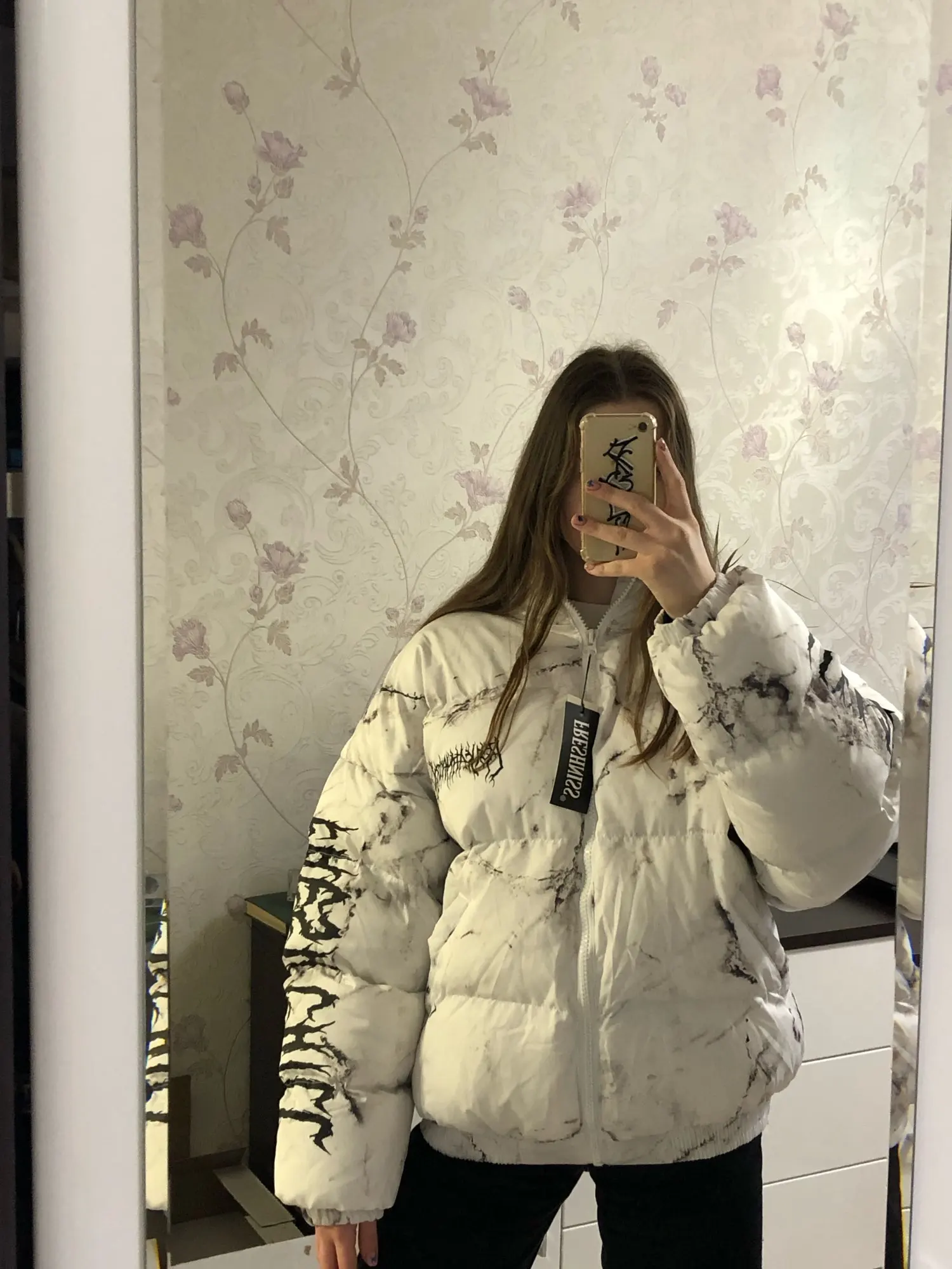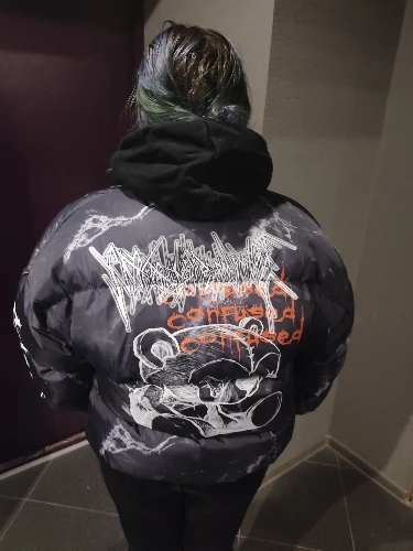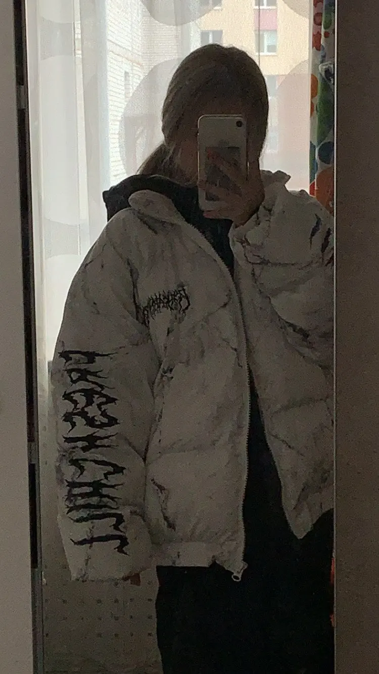 куртец 10/10, деньги уплочены не зря, куртец теплый качественный красивый, нитки не торчат, рисунок четкий крутяшный продавец долго не высылал куртку, но я ему написала, мы обкашляли вопросик и он отправил куртку на следующий день шла не особо долго, задержка была только из-за продавца заказала 12 февраля, забрала с почты 3 марта в общем советую не бояться и покупать главное угадать с размером я заказала L на рост 170 попу чуть чуть прикрывает рукава большие оверсайз не выгляжу как киборг убийца